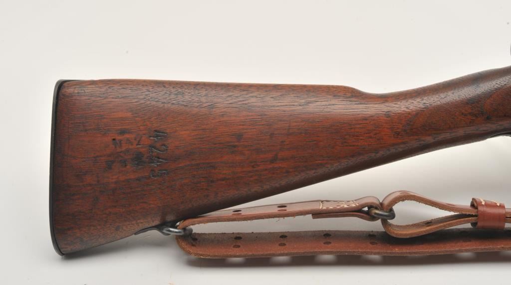 17MH-49 REMINGTON 03 #3005009U.S. Springfield Model 1903 bolt action rifle by Remington, .30-06 caliber, RA barrel dated 10-41, military finish, wood stock, leather sling, S/N 3005009, in overall good to very good condition with a good bore,crisp action, sharp markings and very good wood stock displaying “4245” stamped into right side of butt stock. (C&R/PPT). Est.: $500-$1,000.U.S. Springfield Model 1903 bolt action rifle by Remington, .30-06 caliber, RA barrel dated 10-41, military finish, wood stock, leather sling, S/N 3005009, in overall good to very good condition with a good bore,crisp action, sharp markings and very good wood stock displaying “4245” stamped into right side of butt stock. (C&R/PPT). Est.: $500-$1,000.