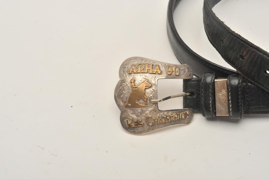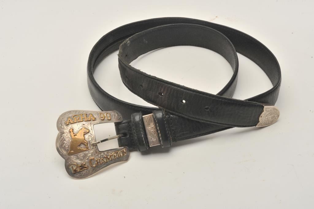 Lot 360 18BZ-2 RODEO BELTRodeo belt brass and sterling from 1990. Beautiful engraving in almost fine condit
