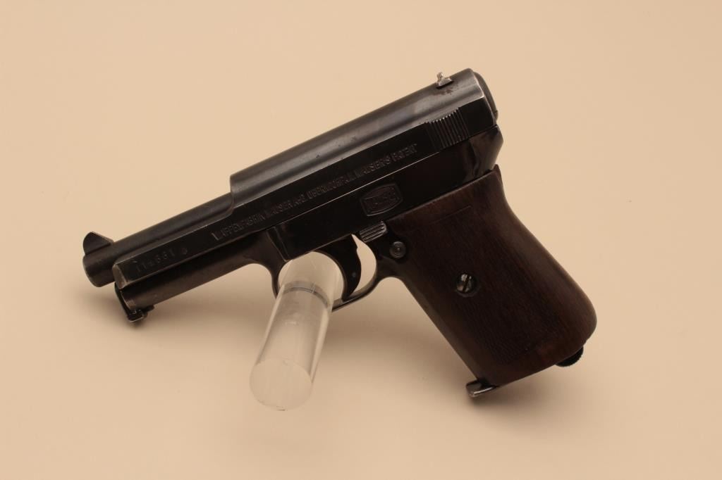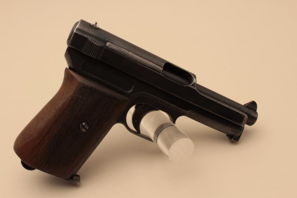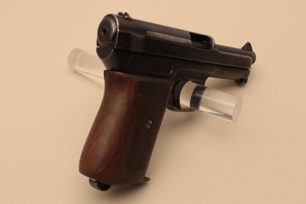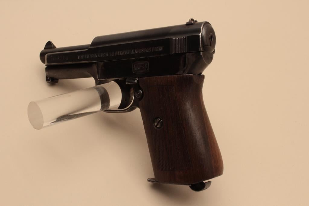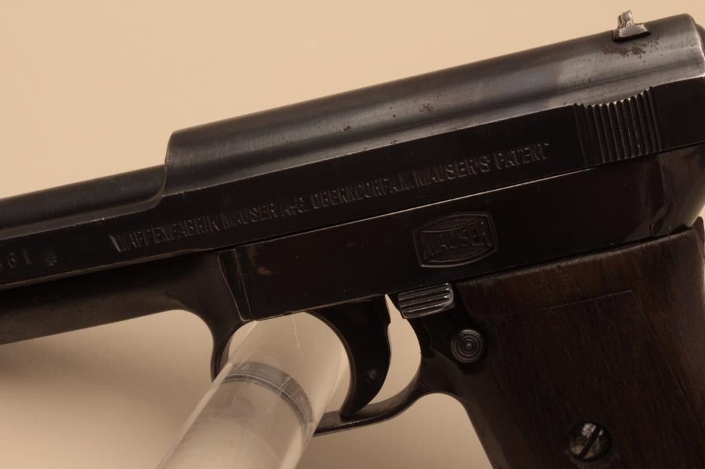 17FL-166 MAUSER PKT #114661Mauser pocket semi-automatic pistol, .32 caliber, 3.5” barrel, blued finish, checkered wood grips, S/N 114661, in overall very good condition displaying majority of original finish, good bore, very good markings, crispaction and good grips. (C&R/PPT). Est.: $350-$700.Mauser pocket semi-automatic pistol, .32 caliber, 3.5” barrel, blued finish, checkered wood grips, S/N 114661, in overall very good condition displaying majority of original finish, good bore, very good markings, crispaction and good grips. (C&R/PPT). Est.: $350-$700.