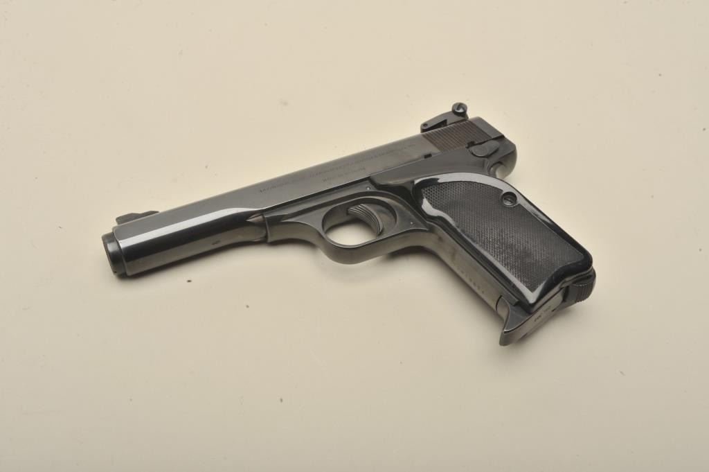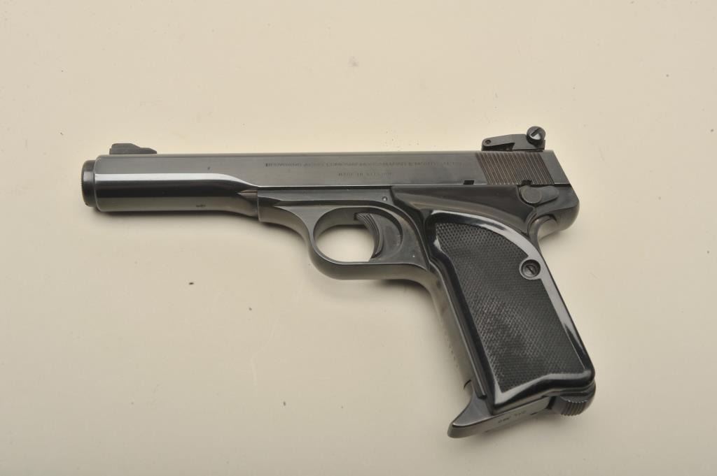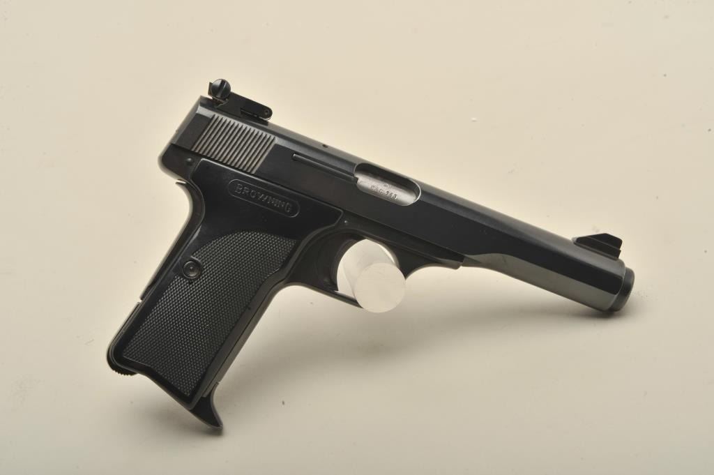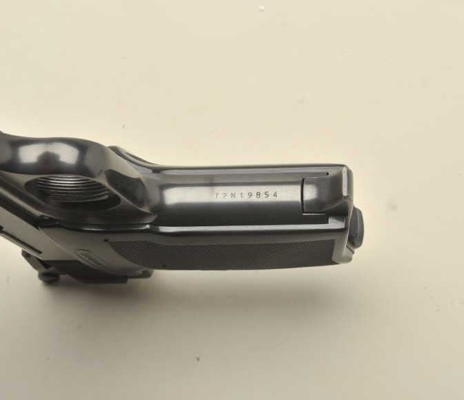 17FL-214 BROWNING .380 #19854Browning semi-automatic pistol, .380 caliber, 4.5” barrel, blued finish, checkered black grips, S/N 72N19854, in overall fine condition displaying the majority of its original blued finish, very good to finebore, crisp action and markings, Belgian-made; fine grips. (Modern/PPT). Est.: $350-$700.Browning semi-automatic pistol, .380 caliber, 4.5” barrel, blued finish, checkered black grips, S/N 72N19854, in overall fine condition displaying the majority of its original blued finish, very good to finebore, crisp action and markings, Belgian-made; fine grips. (Modern/PPT). Est.: $350-$700.