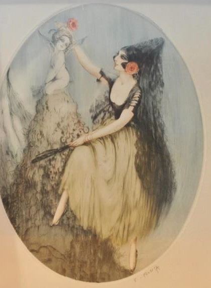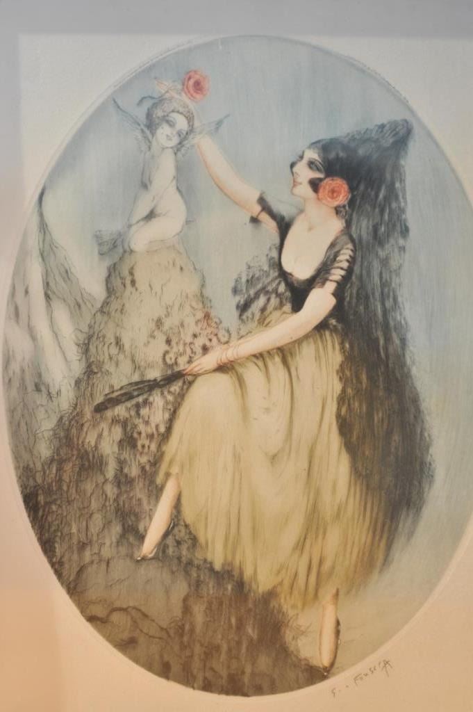 Lot 389 EVE-21 SIGNED PRINTS. Fouseca signed print of lady and cherub. Printer marked “L. Estampe Modern”.