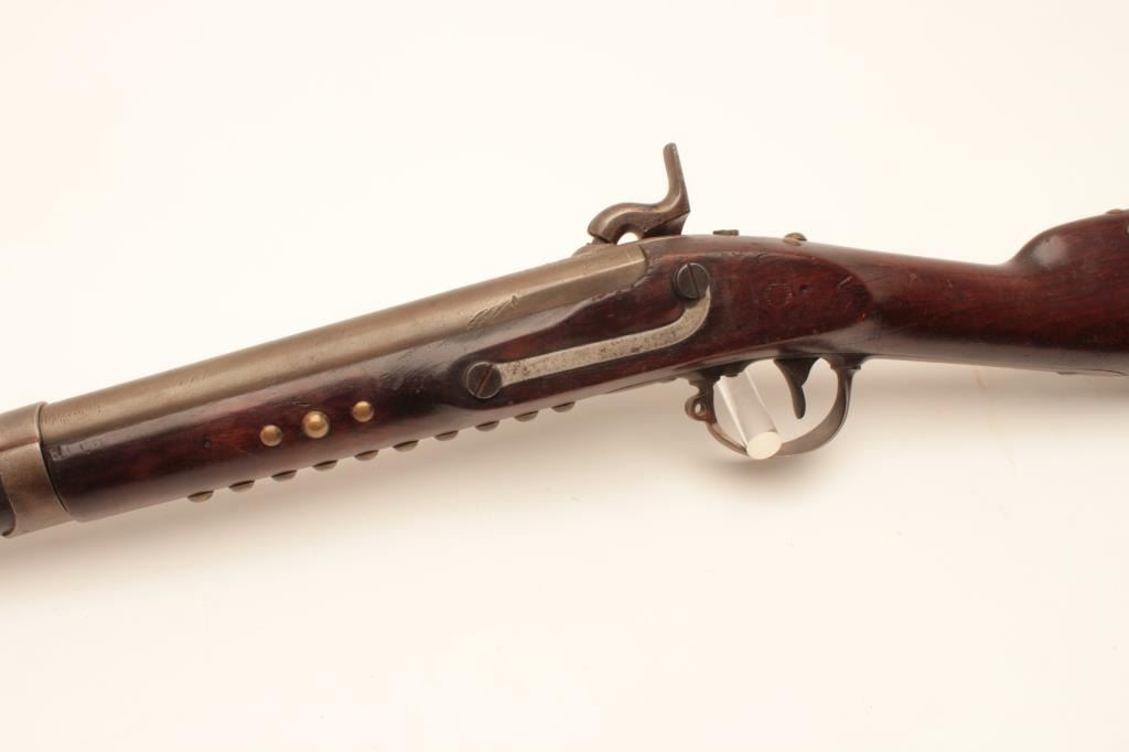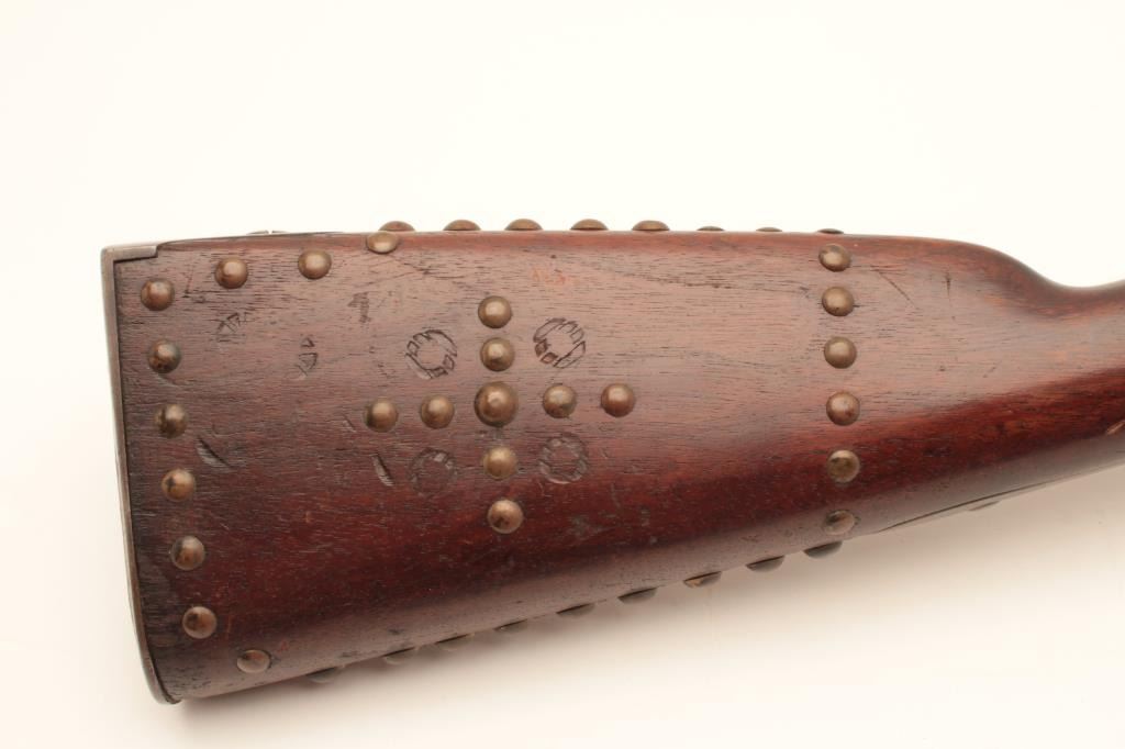 Lot 392 18AP-33 TACKED MUSKETTacked Springfield percussion musket, approximately .75 caliber. The musket i