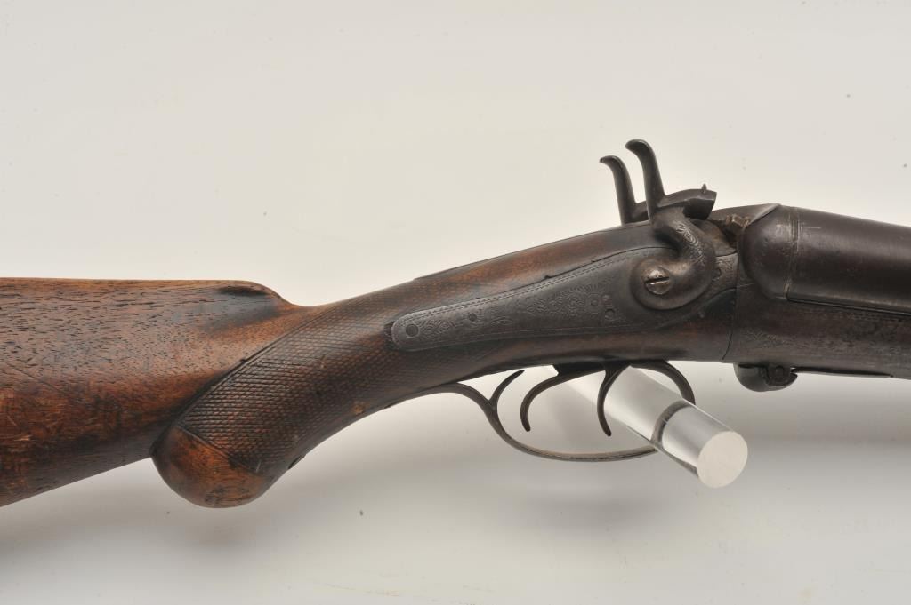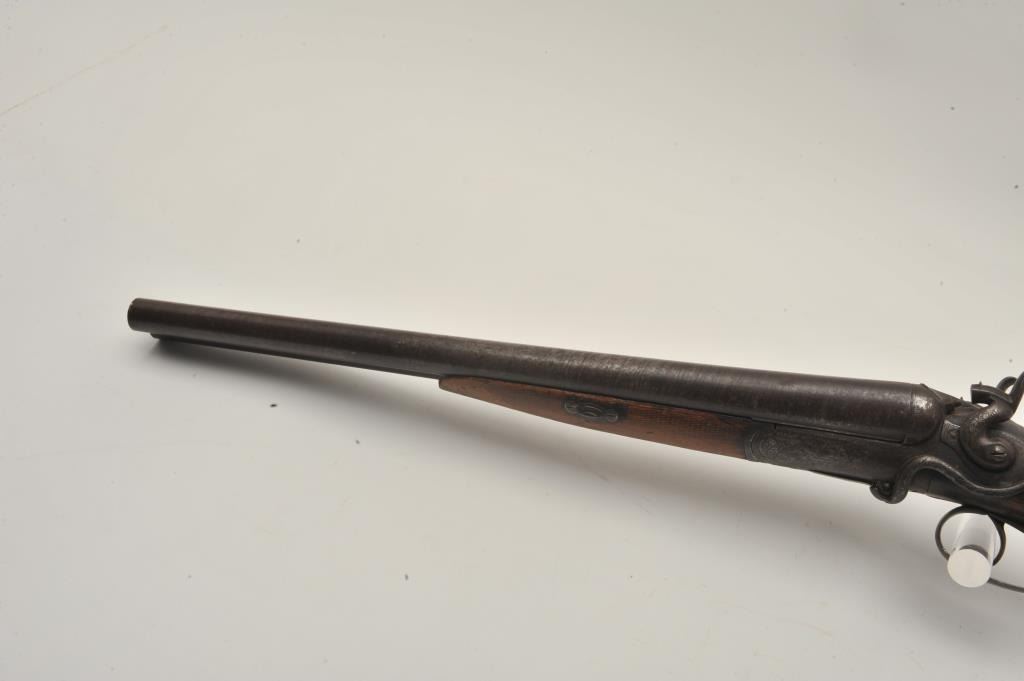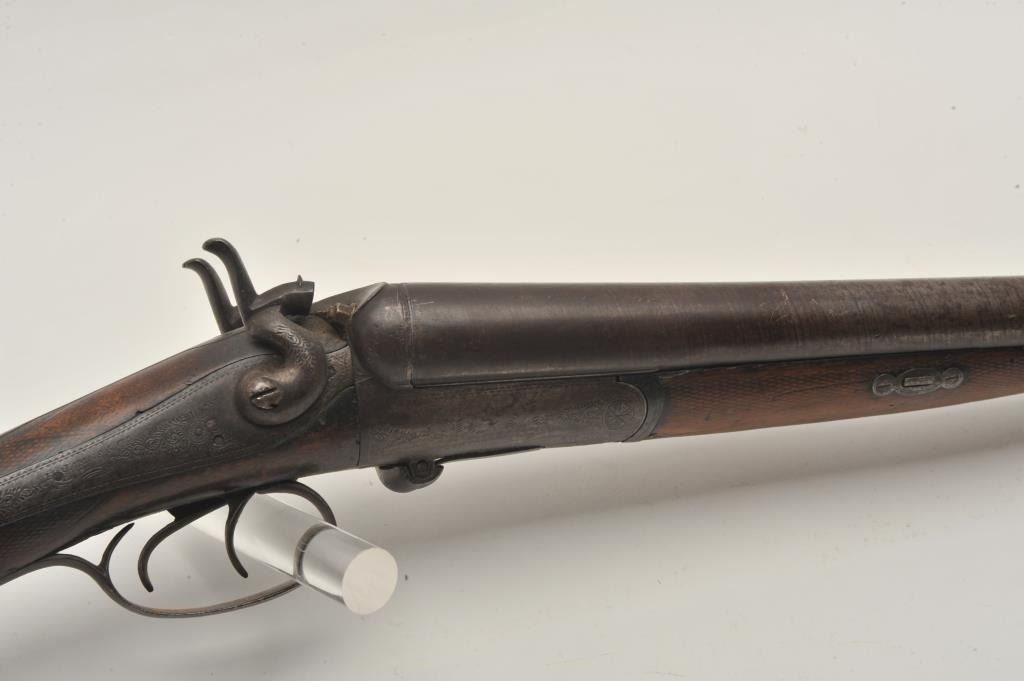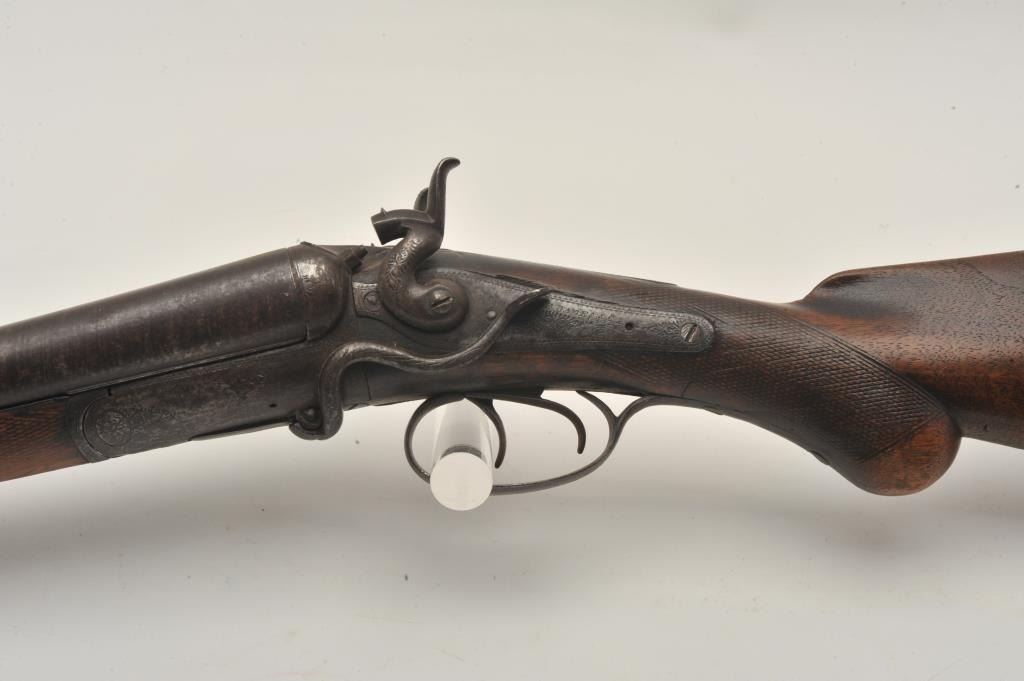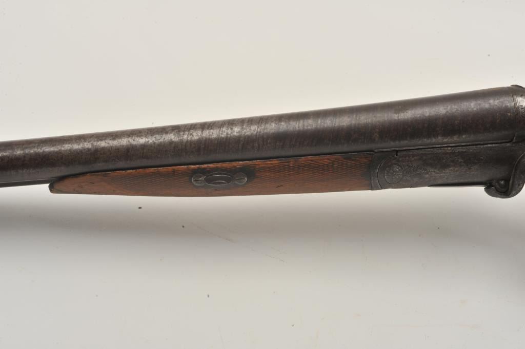 Lot 410 18AP-45 E. JAMES & CO SHOTGUNE. James and Co. side by side double barrel hammer shotgun, 10 gauge,