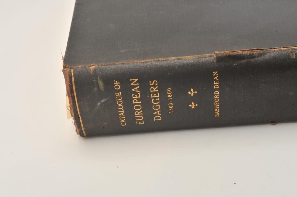 EVE-61 EARLY REF. BOOKEarly reference book “Catalogue of European Daggers” by Bashford Dean, New York 1929. Nice plates intact but binding loose and some staining at the edges. The estate of Eric Vaule. Est.: $300-$600Early reference book “Catalogue of European Daggers” by Bashford Dean, New York 1929. Nice plates intact but binding loose and some staining at the edges. The estate of Eric Vaule. Est.: $300-$600