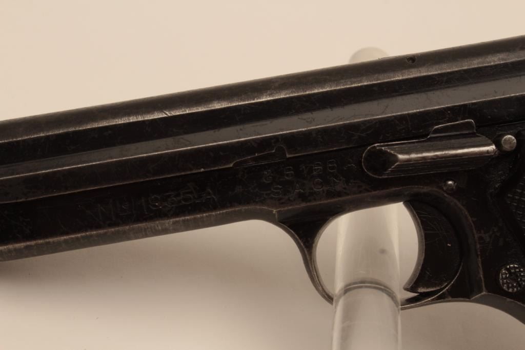 18BM-61 1935A FRENCHFrench Model 1935A .32 cal. semi automatic military pistol, 4.25" barrel, black military finish, checkered plastic grips. Pistol is in good to very good condition overall, bore is good, as is action, grips are good showing no chips or cracks. (C&R / PPT) Est. 150-300French Model 1935A .32 cal. semi automatic military pistol, 4.25" barrel, black military finish, checkered plastic grips. Pistol is in good to very good condition overall, bore is good, as is action, grips are good showing no chips or cracks. (C&R / PPT) Est. 150-300