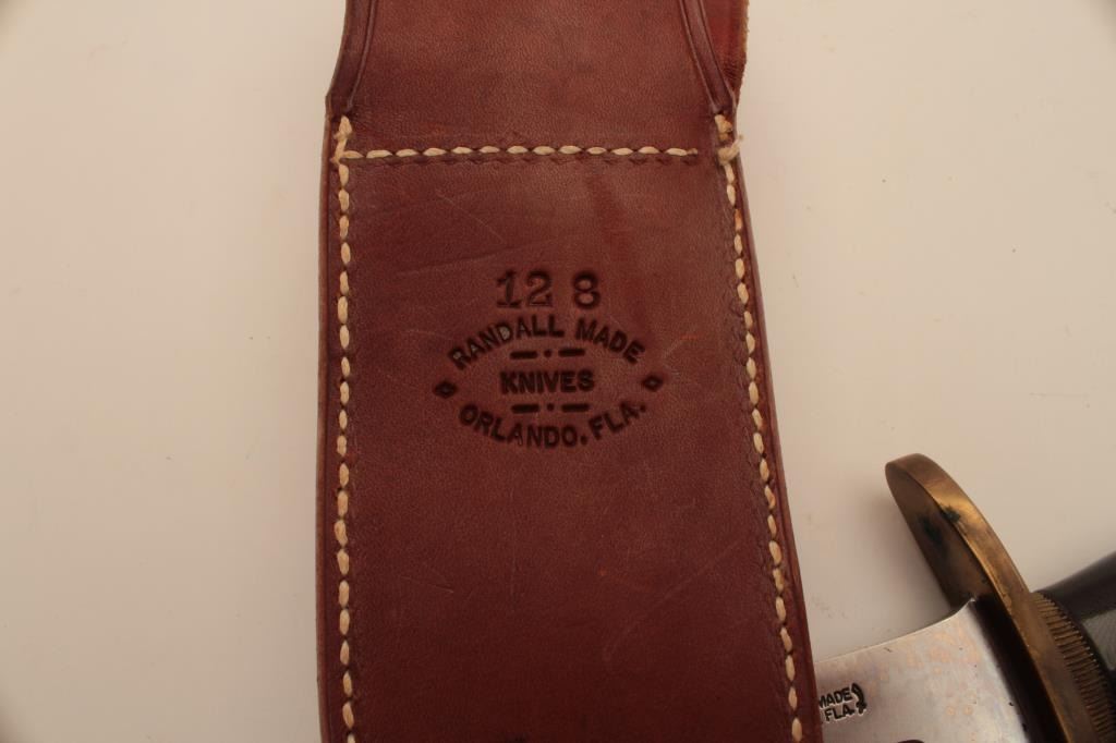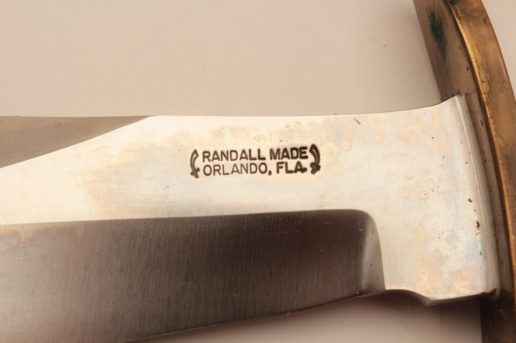 Lot 436 18CD-2 RANDALL BOWIEUnusual Randal Bowie with clip point and radical shaping. Numbered 128 on the r