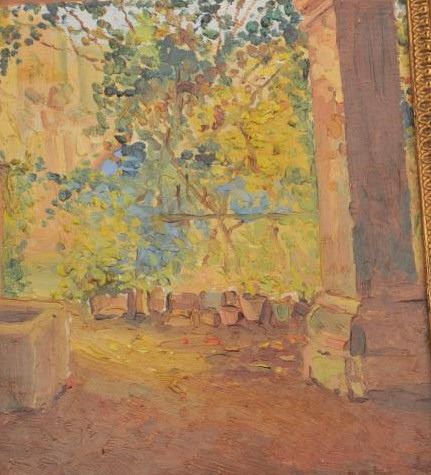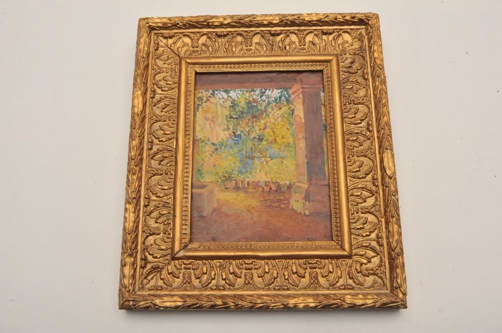 18BW-12 OIL PAINTINGGood small pointillist oil painting late 19th early 20th century. High quality. 100-200Good small pointillist oil painting late 19th early 20th century. High quality. 100-200