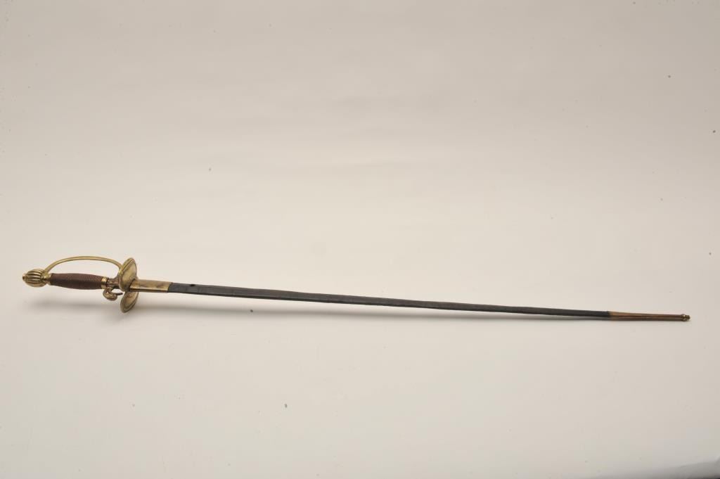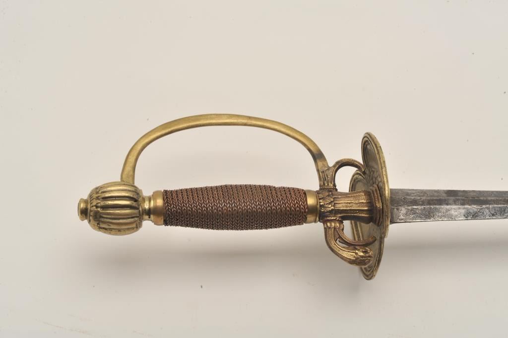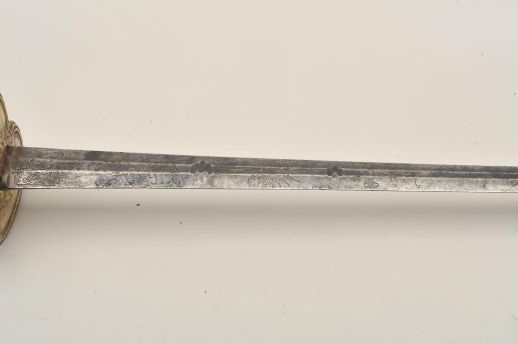 Lot 469 18AR-17 FRENCH SMALL SWORDFrench small sword circa 18th century with cast brass hilt showing gold g