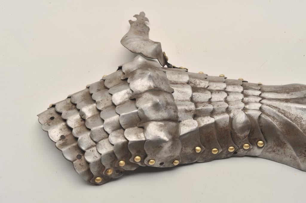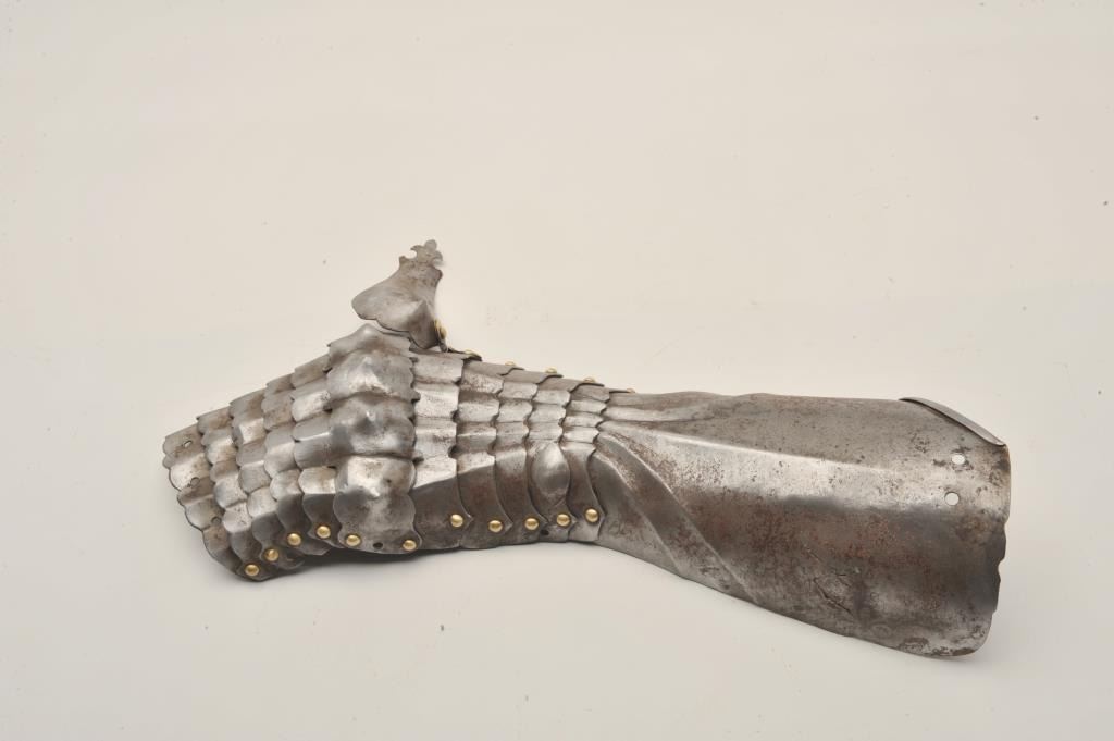 Lot 483 18AT-17 GERMAN STYLE MITTEN GAUNTLETGermanic 17th century fancy mitten gauntlet for left hand and t