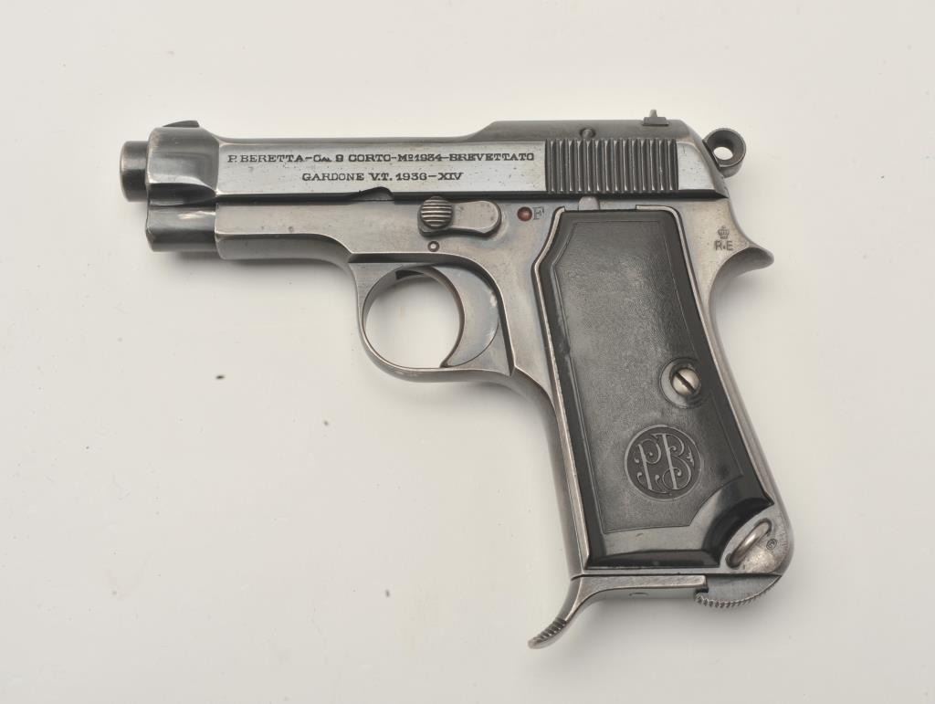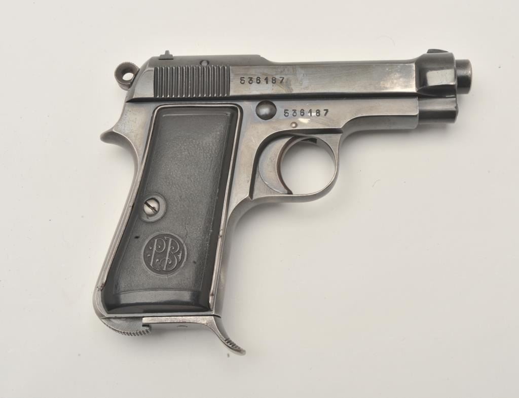 17MH-11 BERETTA 1934 #536187Beretta Model 1934 semi-automatic pistol, .380 caliber, blued finish, black grips, S/N 536187, in overall very good condition with majority of its blued finish remaining, crisp action, sharp markings, good bore and grips. (C&R/PPT). Est.: $300-$600.Beretta Model 1934 semi-automatic pistol, .380 caliber, blued finish, black grips, S/N 536187, in overall very good condition with majority of its blued finish remaining, crisp action, sharp markings, good bore and grips. (C&R/PPT). Est.: $300-$600.