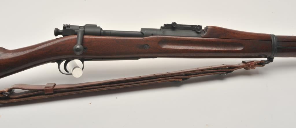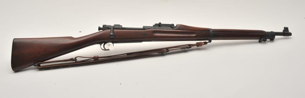 17MH-45 ROCK ISLAND 1903 #340984U.S. Springfield Model 1903 bolt action rifle by Rock Island Arsenal, .30-06 caliber, RIA barrel dated 9-18, re-finished, leather sling dated 1918, gun is S/N 340984, in overall good + condition as re-finished, good bore,crisp action, good markings and wood stock. (C&R/PPT). Est.: $400-$800.U.S. Springfield Model 1903 bolt action rifle by Rock Island Arsenal, .30-06 caliber, RIA barrel dated 9-18, re-finished, leather sling dated 1918, gun is S/N 340984, in overall good + condition as re-finished, good bore,crisp action, good markings and wood stock. (C&R/PPT). Est.: $400-$800.