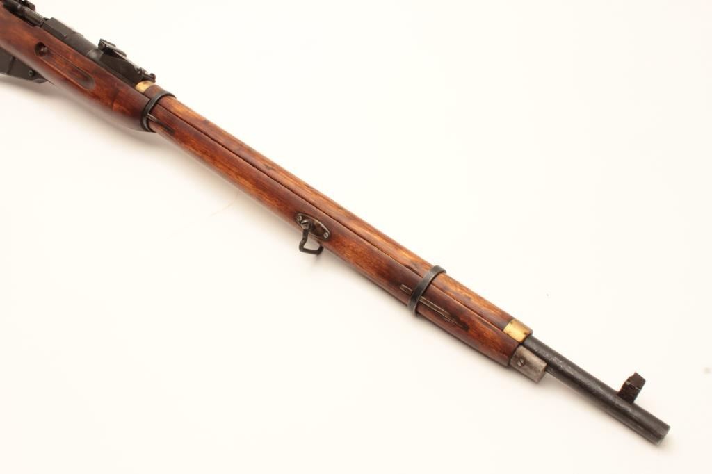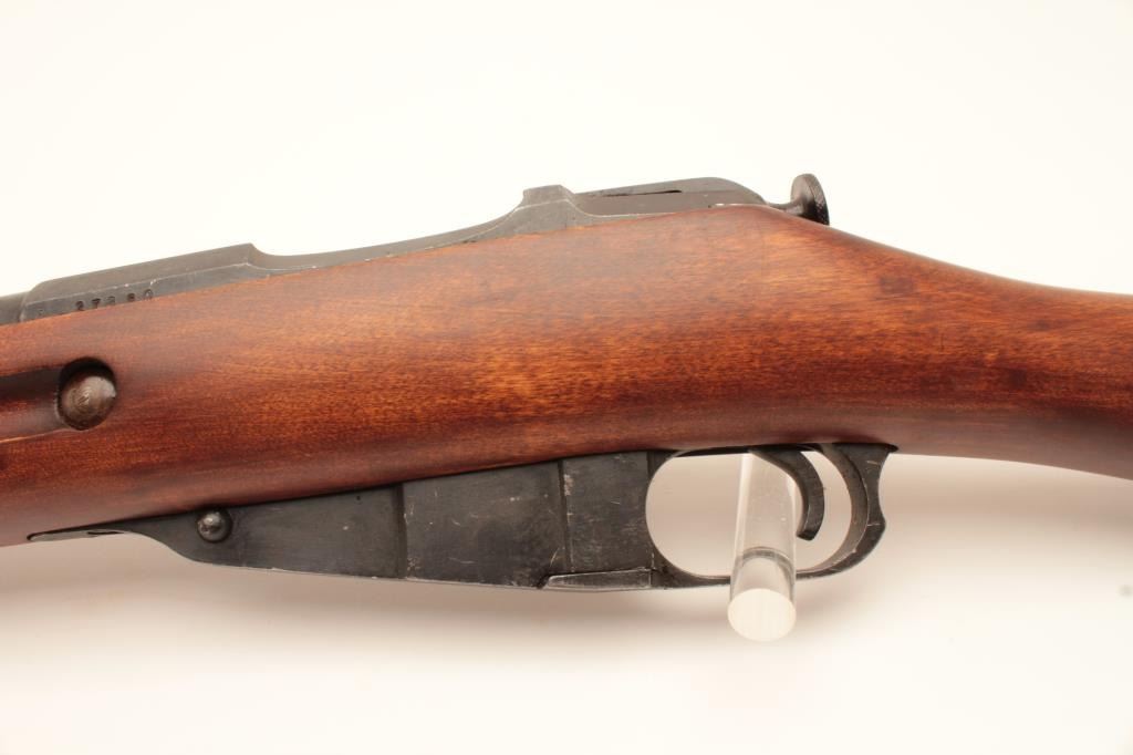 17KH-600 MOSIN NAGANTRussian Mosin Nagant Model 91 bolt action rifle, 7.62mm caliber, import-marked, military finish, wood stock, S/N 27860, in overall good + condition with a crisp action, good bore, good markings, overall good wood; missing cleaning rod. (C&R/PPT). Est.: $200-$400.Russian Mosin Nagant Model 91 bolt action rifle, 7.62mm caliber, import-marked, military finish, wood stock, S/N 27860, in overall good + condition with a crisp action, good bore, good markings, overall good wood; missing cleaning rod. (C&R/PPT). Est.: $200-$400.