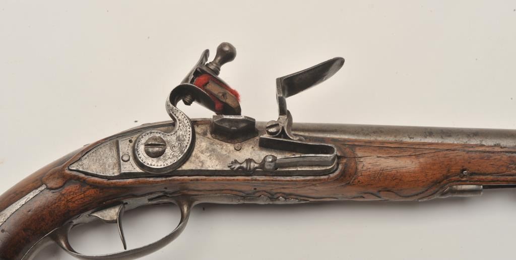 Lot 550 18AR-40 FRENCH FLINTLOCKFrench flintlock pistol, approximately 11” overall with a 6” barrel, wood s