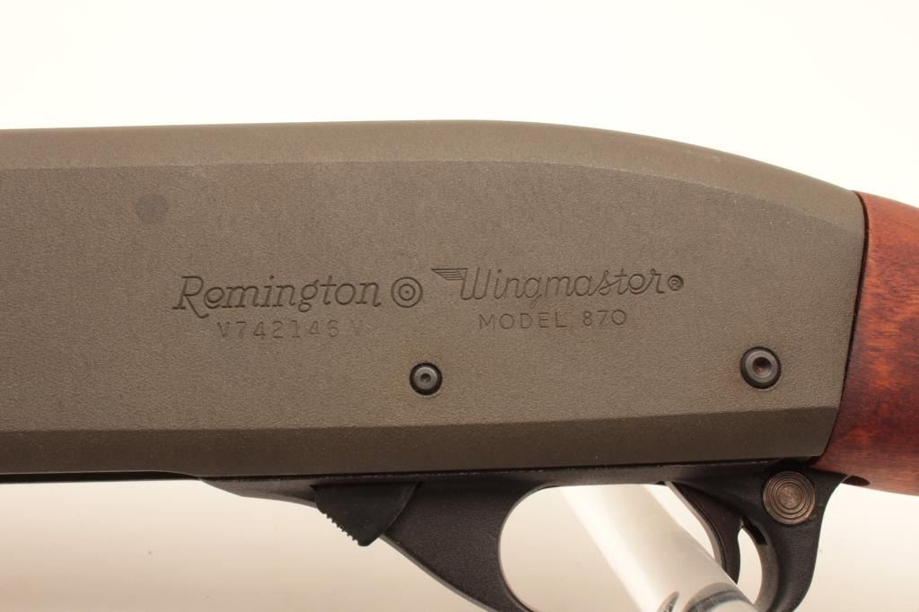 18EMY-20 REMINGTON MDL 870Remington Model 870 Wingmaster pump action shotgun, 12 gauge, parkerized finish, “PIMC COMBAT”-marked on left side of receiver, wood stocks, 18” barrel, S/N V742146V, in overall excellent to like new condition.(Modern/PPT). Est.: $250-$500.Remington Model 870 Wingmaster pump action shotgun, 12 gauge, parkerized finish, “PIMC COMBAT”-marked on left side of receiver, wood stocks, 18” barrel, S/N V742146V, in overall excellent to like new condition.(Modern/PPT). Est.: $250-$500.