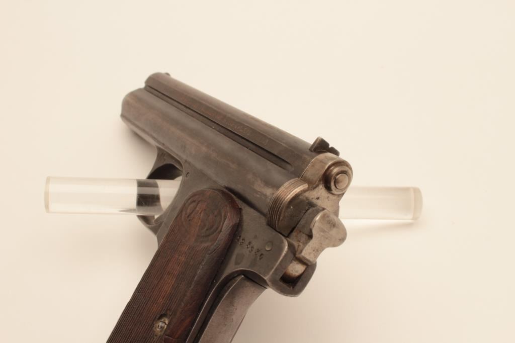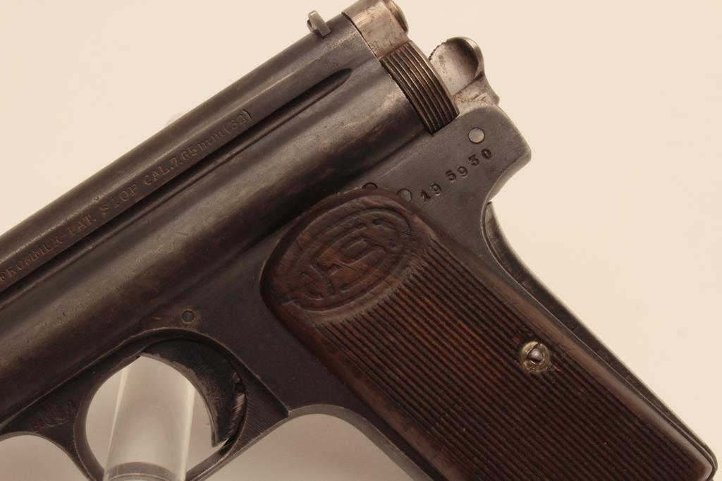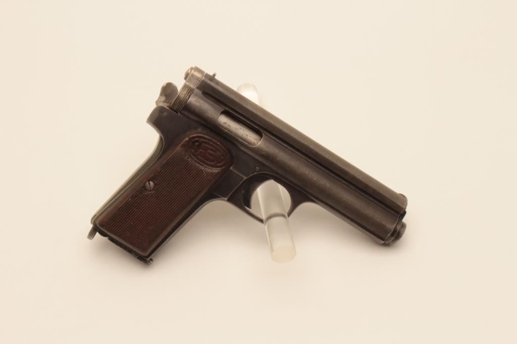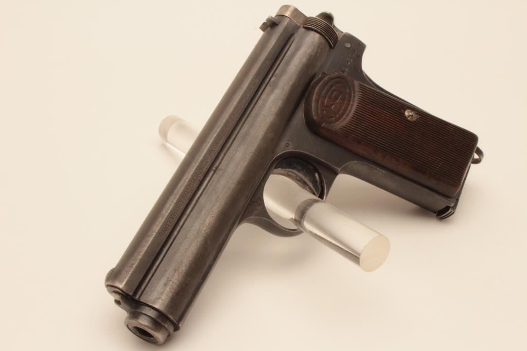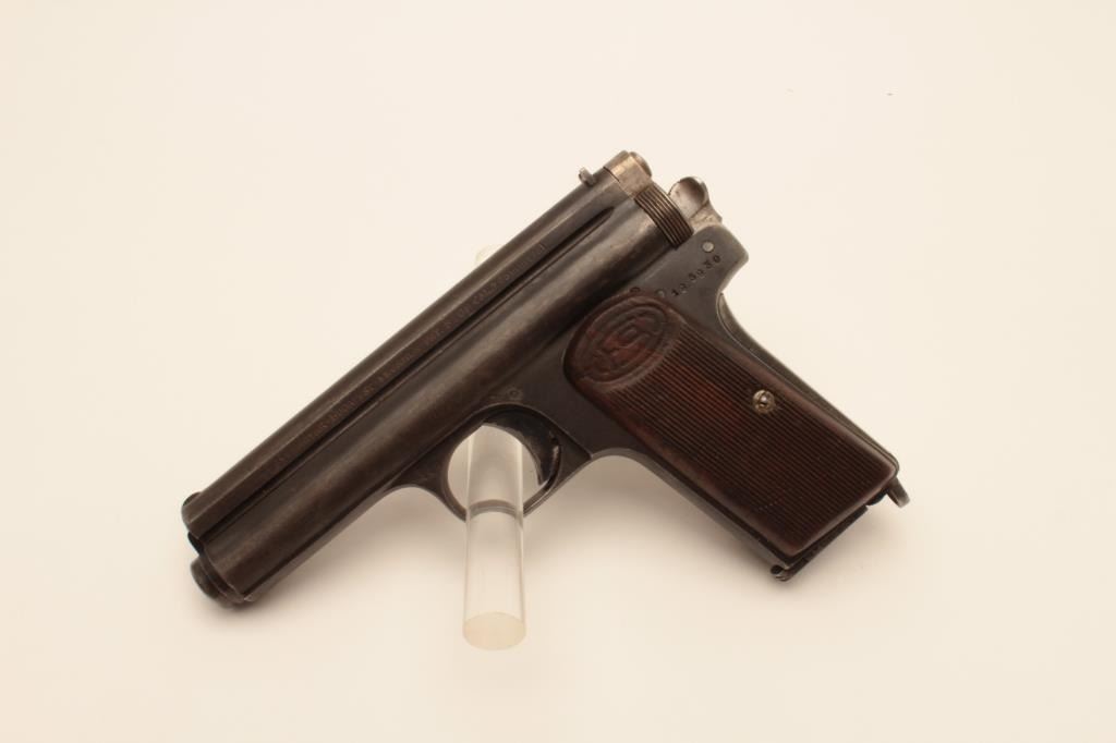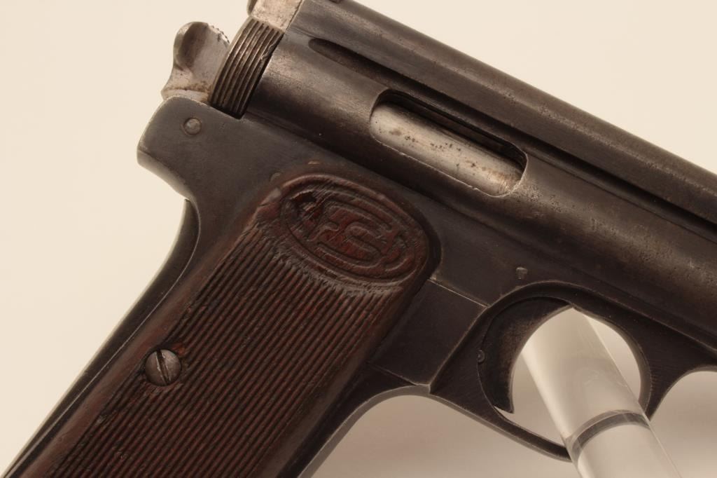 17AX-1 FEG VERGYAR 1912 #193930FEG Vergyar semi-automatic pistol, 7.65mm caliber, Serial #195930. The pistol is in good overall condition with a 4” barrel. The pistol is a mixture old muted blue and grey patina with wear at the muzzle. The pistolshows some toning case hardening. The textured wood grip scales are in good condition with wear and small mars. The lanyard ring is retained in the base and the pistol includes one correct magazine. Thebore is good, the action functions and markings are legible. Consignor notes indicate that the magazine is not functioning properly at the time of description. Est.: $200-$400. (C+R).FEG Vergyar semi-automatic pistol, 7.65mm caliber, Serial #195930. The pistol is in good overall condition with a 4” barrel. The pistol is a mixture old muted blue and grey patina with wear at the muzzle. The pistolshows some toning case hardening. The textured wood grip scales are in good condition with wear and small mars. The lanyard ring is retained in the base and the pistol includes one correct magazine. Thebore is good, the action functions and markings are legible. Consignor notes indicate that the magazine is not functioning properly at the time of description. Est.: $200-$400. (C+R).