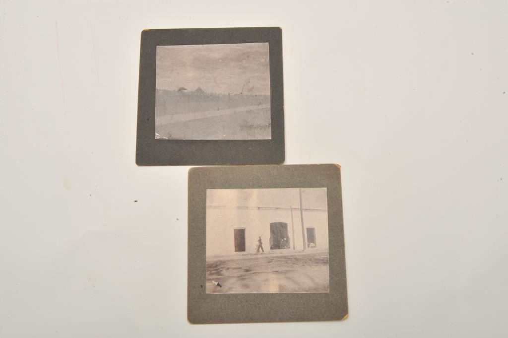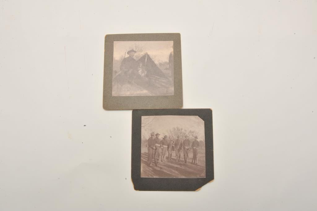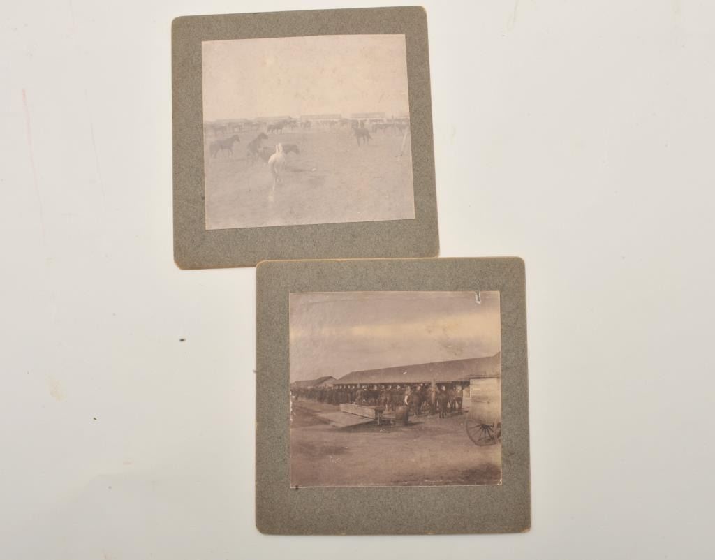 18EMY-22 MISC LOTBinder including lot of 18 original early military photographs, most identified on back of photos, showing scenes ca. Spanish-American War, including locations of Fort Clark, TX, Los Banos, Philippines, andMexico. Est.: $100-$200.Binder including lot of 18 original early military photographs, most identified on back of photos, showing scenes ca. Spanish-American War, including locations of Fort Clark, TX, Los Banos, Philippines, andMexico. Est.: $100-$200.