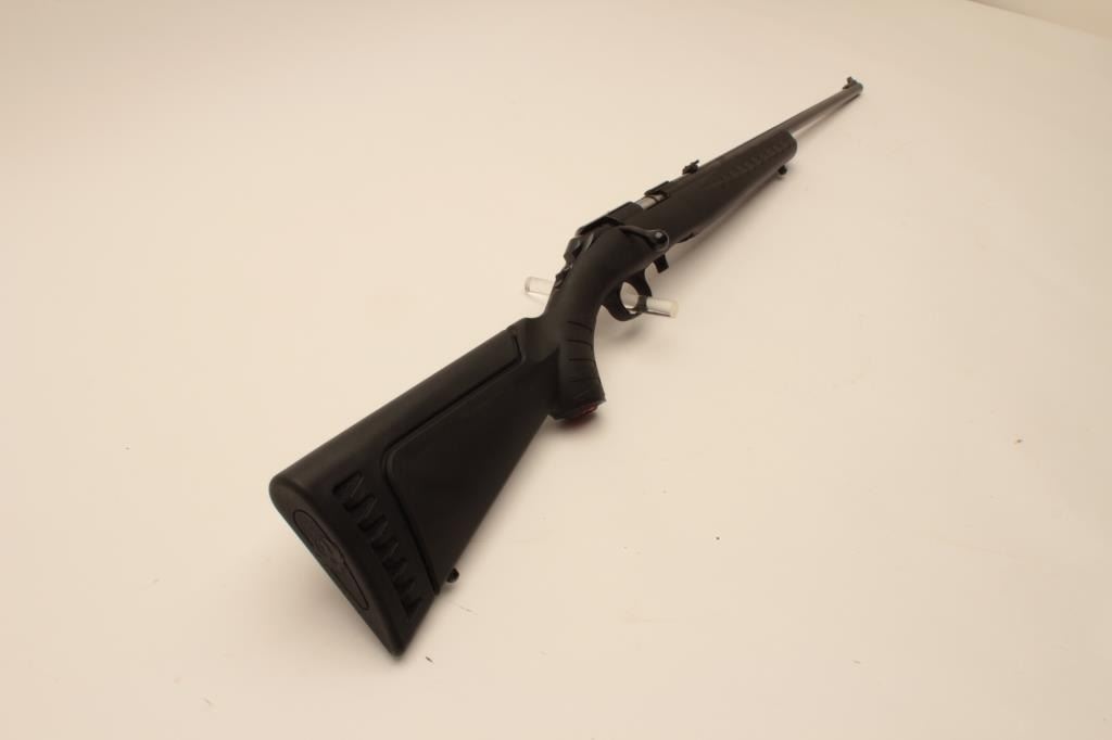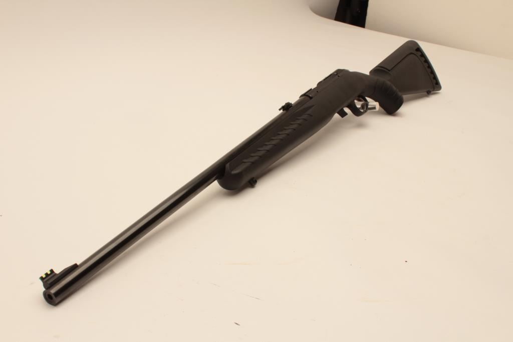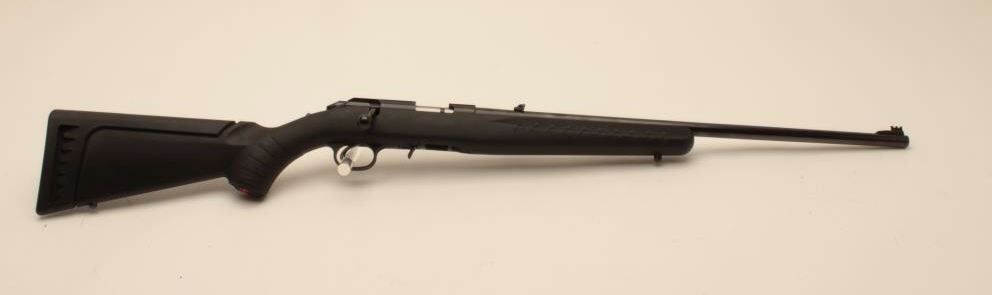 18BA-1 RUGER AMERICAN PINFIRERuger American bolt action rifle, .22 Long Rifle caliber, Serial #830-30333. The rifle is in very good overall condition with a 22” barrel with a hi-viz front and folding rear sights. The barrel and receiver retainnearly all of their blue finish with only light handling marks noted. The receiver has been drilled and tapped for scope mounting and features an accutrigger. The Ruger marked synthetic stock is in very goodcondition showing little use. The bore is good, the action is crisp and the markings are sharp. The rifle includes one correct magazine. Est.: $150-$300. (Modern).Ruger American bolt action rifle, .22 Long Rifle caliber, Serial #830-30333. The rifle is in very good overall condition with a 22” barrel with a hi-viz front and folding rear sights. The barrel and receiver retain nearly all of their blue finish with only light handling marks noted. The receiver has been drilled and tapped for scope mounting and features an accutrigger. The Ruger marked synthetic stock is in very good condition showing little use. The bore is good, the action is crisp and the markings are sharp. The rifle includes two magazines and extra butt stock Est.: $150-$300. (Modern).