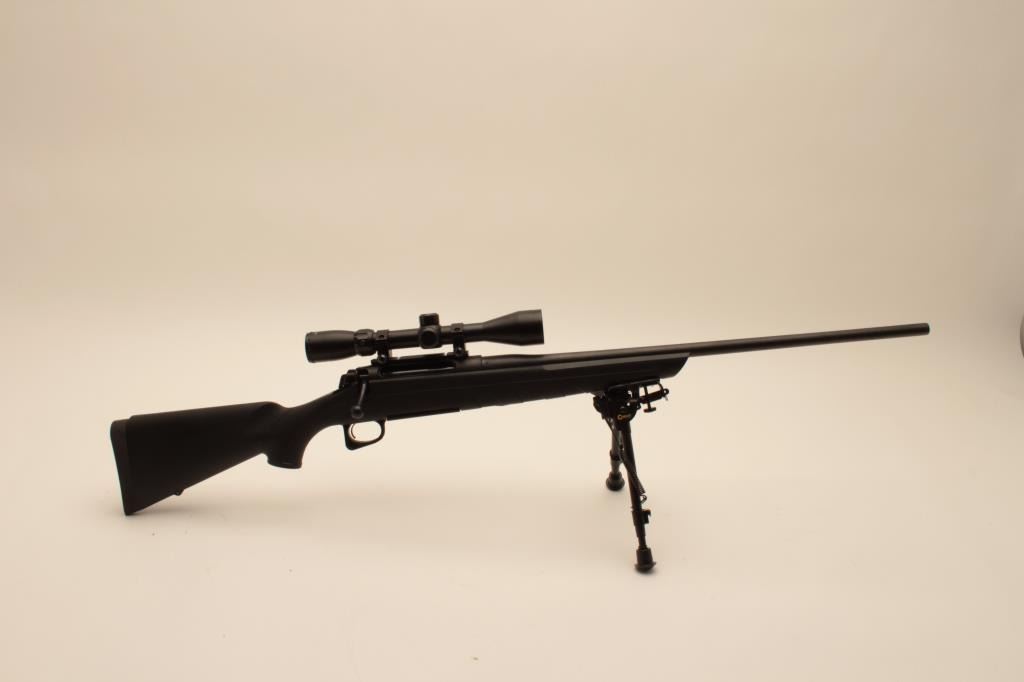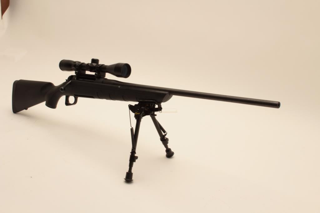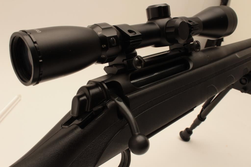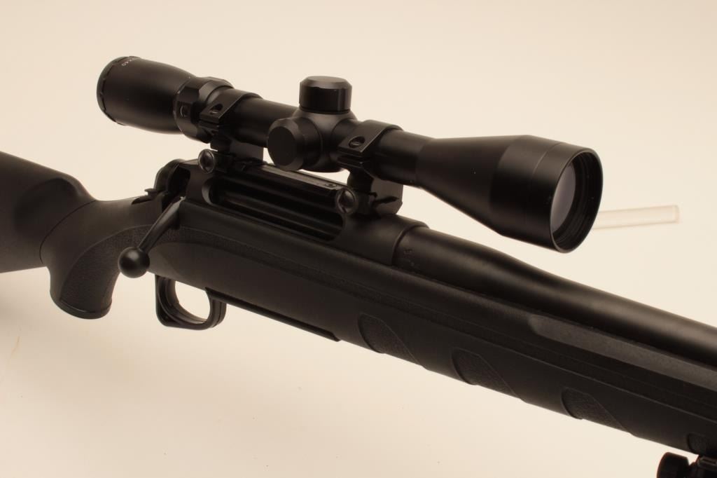 18BA-2 REMINGTON 770 #M71948038Remington 770 bolt action rifle, 7mm Rem. Mag. caliber, Serial #71948038. The rifle is in very good overall condition with a 24” barrel showing little, if any use. The barrel and receiver retain nearly all oftheir matte blue finish with only light handling marks noted. The synthetic stock is in very good condition with a Remington marked rubber butt pad. The rifle has been fitted with a Caldwell adjustable bipod andincludes one correct magazine. The rifle is topped with an unmarked 3 x 9 x 40 adjustable power scope. The bore is good, the action crisp and markings are sharp on this lightly used Remington. Est.: $200-$400. (Modern).Remington 770 bolt action rifle, 7mm Rem. Mag. caliber, Serial #71948038. The rifle is in very good overall condition with a 24” barrel showing little, if any use. The barrel and receiver retain nearly all oftheir matte blue finish with only light handling marks noted. The synthetic stock is in very good condition with a Remington marked rubber butt pad. The rifle has been fitted with a Caldwell adjustable bipod andincludes one correct magazine. The rifle is topped with an unmarked 3 x 9 x 40 adjustable power scope. The bore is good, the action crisp and markings are sharp on this lightly used Remington. Est.: $200-$400. (Modern).