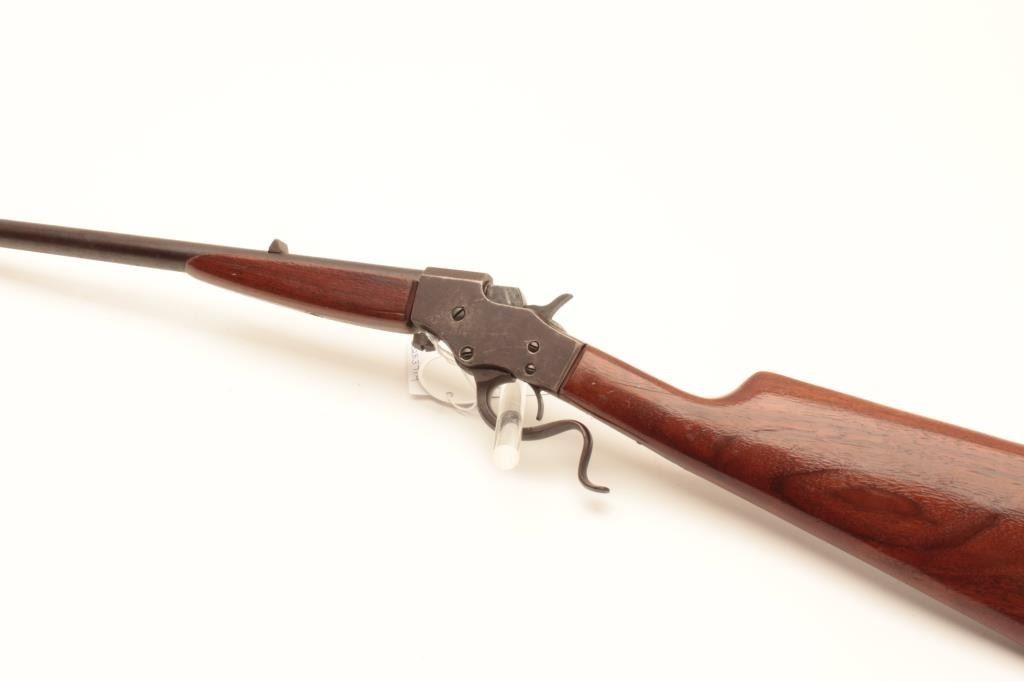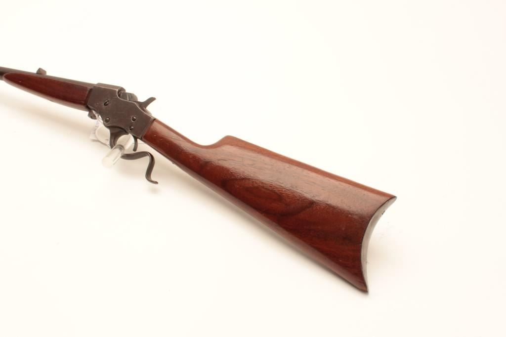 18BB-3 FAVORITE MDL 1915Stevens Favorite Model 1915 takedown single shot rifle, .22 Long Rifle caliber, Serial #632. The rifle is in fair overall condition with a 22 ½” round barrel with a replacement front sight blade. The barrel and receiverhave gone to a brown patina with light surface erosion noted. The smooth wood stocks are in good condition with mars, scratches and a smooth, steel crescent butt plate. The bore is rough, the actionfunctions and markings are legible. Est.: $150-$300. (C+R).Stevens Favorite Model 1915 takedown single shot rifle, .22 Long Rifle caliber, Serial #632. The rifle is in fair overall condition with a 22 ½” round barrel with a replacement front sight blade. The barrel and receiverhave gone to a brown patina with light surface erosion noted. The smooth wood stocks are in good condition with mars, scratches and a smooth, steel crescent butt plate. The bore is rough, the actionfunctions and markings are legible. Est.: $150-$300. (C+R).