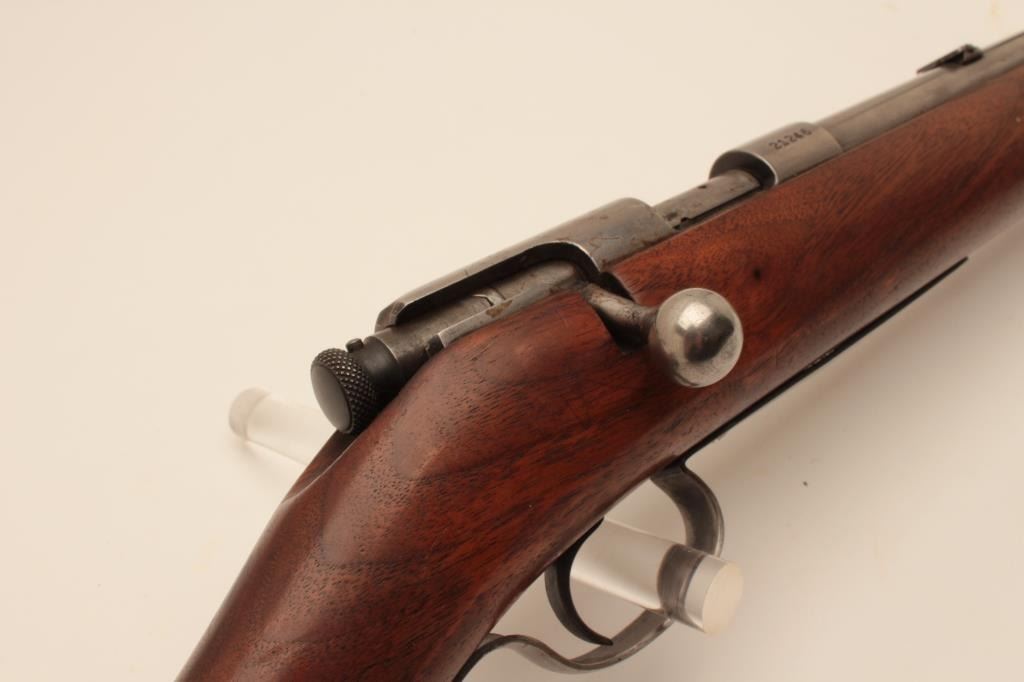 17KH-510 WIN. 57 #21246Winchester Model 57 bolt action rifle, .22 caliber, no magazine, wood stock, S/N 21246, overall good condition with grey patina, good bore, good action, good markings and overall good wood stock with checkered steel buttplate. (C&R/PPT). Est.: $125-$250.Winchester Model 57 bolt action rifle, .22 caliber, no magazine, wood stock, S/N 21246, overall good condition with grey patina, good bore, good action, good markings and overall good wood stock with checkered steel buttplate. (C&R/PPT). Est.: $125-$250.