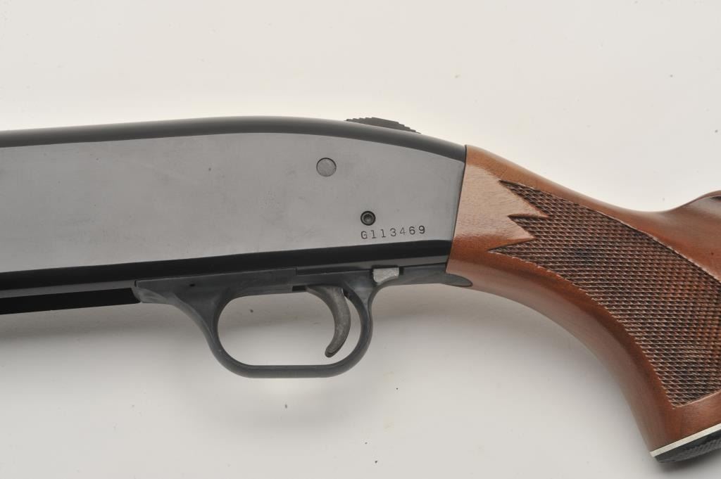 17MF-5 MOSSBERG #G113469Mossberg Model 500C pump shotgun, 20 gauge, Serial #G113469. The shotgun is in very good overall condition with a 28” barrel with a brass bead front sight. The barrel and receiver retain nearly all of their bluefinish with only minor handling marks. The checkered wood stocks are in very good condition showing little use. The butt ends with a Mossberg marked ventilated pad providing a 14” LOP. The bore is good, theaction crisp and markings are legible. Est.: $125-$250. (Modern).Mossberg Model 500C pump shotgun, 20 gauge, Serial #G113469. The shotgun is in very good overall condition with a 28” barrel with a brass bead front sight. The barrel and receiver retain nearly all of their bluefinish with only minor handling marks. The checkered wood stocks are in very good condition showing little use. The butt ends with a Mossberg marked ventilated pad providing a 14” LOP. The bore is good, theaction crisp and markings are legible. Est.: $125-$250. (Modern).