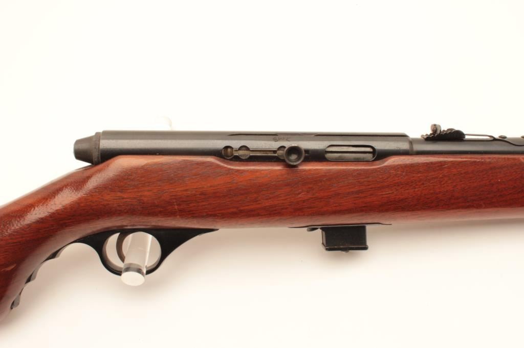 17KH-427 MOSSBERG 152KMossberg Model 152K semi-automatic rifle, .22LR caliber, blued finish, wood stock, no visible S/N, in overall good + condition with majority of original blued finish, good bore, crisp action, good markings and good +stock. (Modern/PPT). Est.: $100-$200.Mossberg Model 152K semi-automatic rifle, .22LR caliber, blued finish, wood stock, no visible S/N, in overall good + condition with majority of original blued finish, good bore, crisp action, good markings and good +stock. (Modern/PPT). Est.: $100-$200.