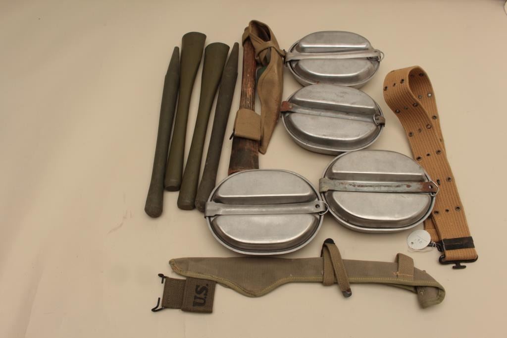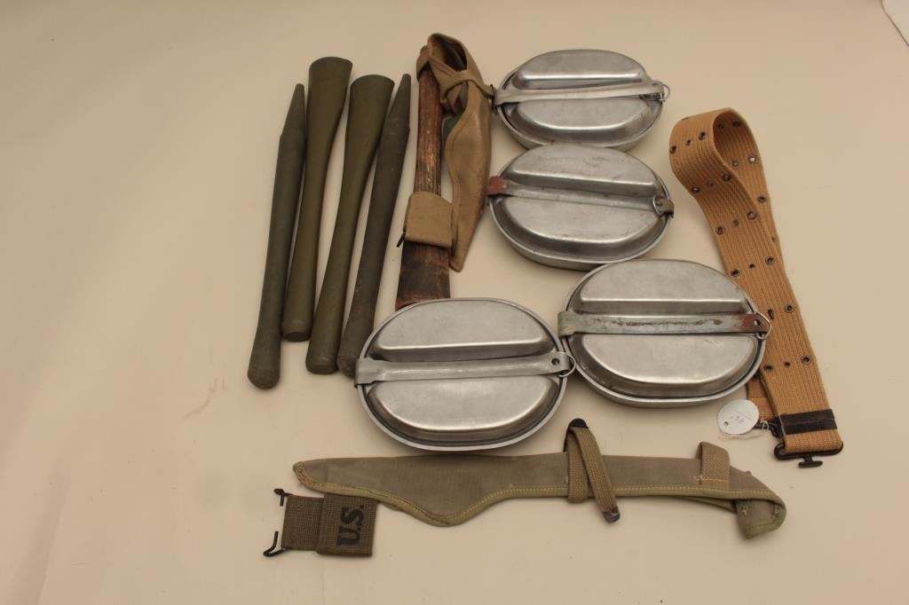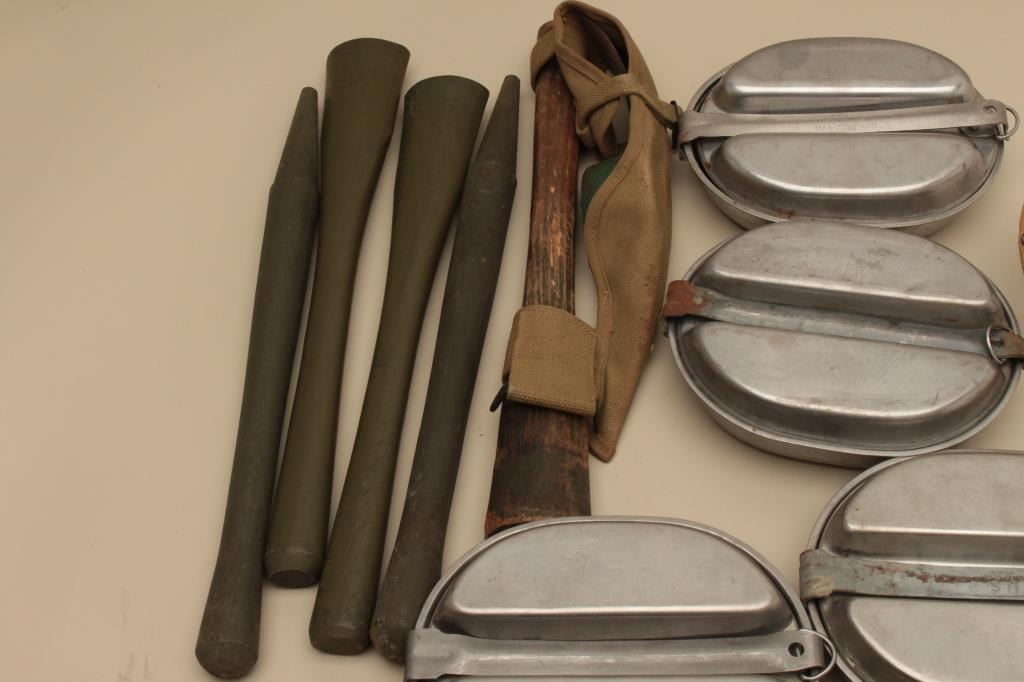 Lot 633 17JL-22 MILITARY GEARMisc. military gear lot including mess kits, tent stakes, entrenching tool, we