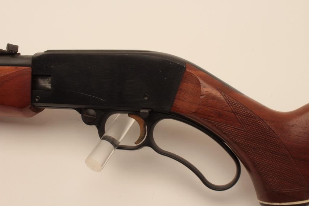 17KH-520 MOSSBERG 402 #00042BMossberg Model 402 Palomino lever action rifle, .22 short, long or LR caliber, blued finish, checkered wood stocks, S/N 00042B, overall good condition with some light surface erosion to breech area of barrel from long storage; otherwise, majority of original finish remains, good bore, action, markings and wood stocks. (Modern/PPT). Est.: $100-$200.Mossberg Model 402 Palomino lever action rifle, .22 short, long or LR caliber, blued finish, checkered wood stocks, S/N 00042B, overall good condition with some light surface erosion to breech area of barrel from long storage; otherwise, majority of original finish remains, good bore, action, markings and wood stocks. (Modern/PPT). Est.: $100-$200.