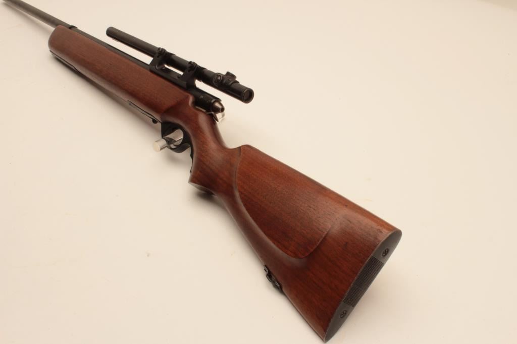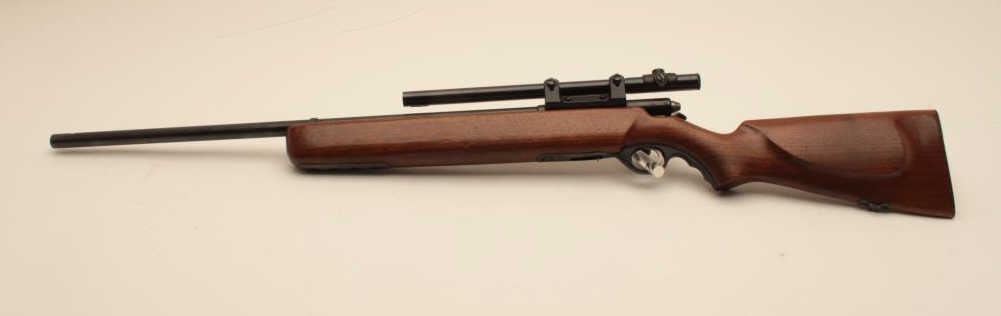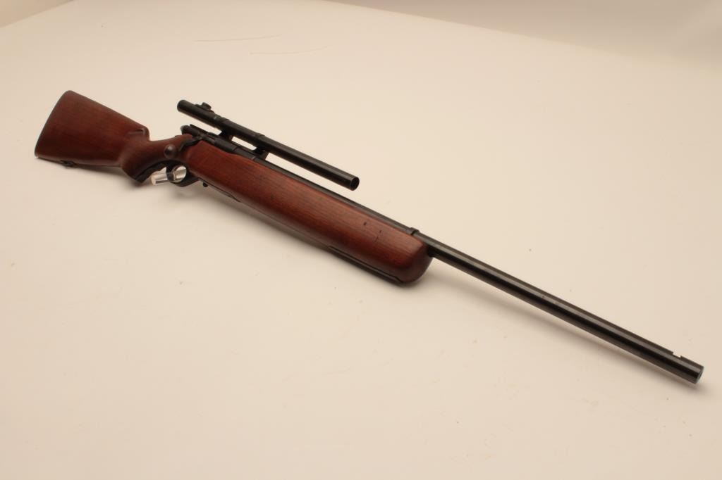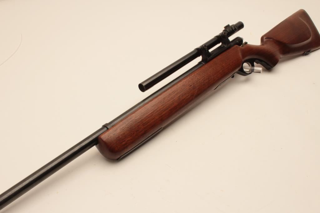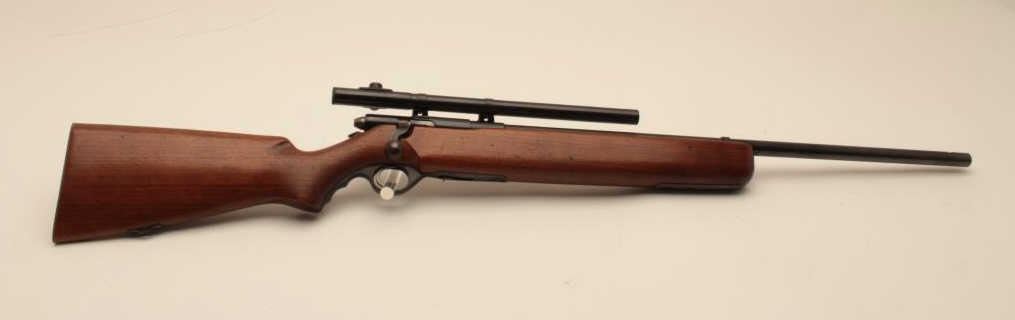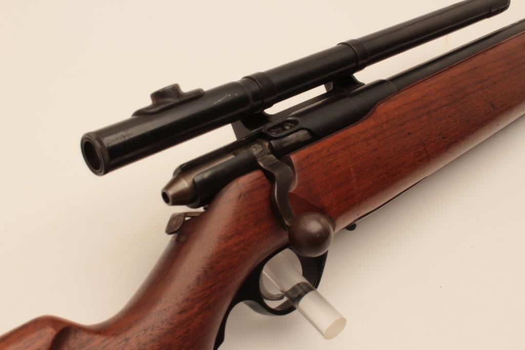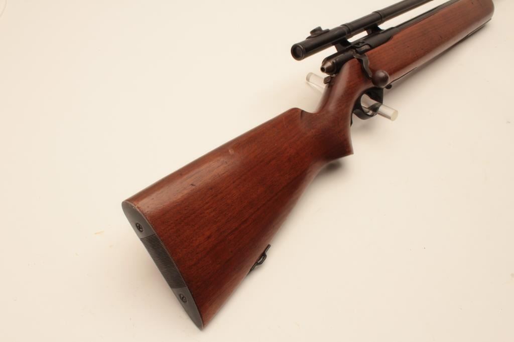 17KH-556 MOSSBERG 44BMossberg Model 44B bolt action rifle, no magazine, .22LR caliber, blued finish, target wood stock, no visible S/N, mounted with a 4 power tube scope displaying good optics, in overall good condition with a good bore,crisp action, good markings and good stock. (C&R/PPT). Est.: $100-$200.Mossberg Model 44B bolt action rifle, no magazine, .22LR caliber, blued finish, target wood stock, no visible S/N, mounted with a 4 power tube scope displaying good optics, in overall good condition with a good bore,crisp action, good markings and good stock. (C&R/PPT). Est.: $100-$200.