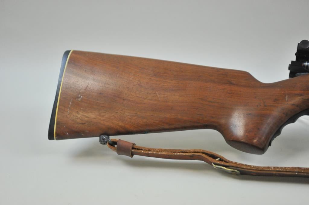 17KH-560- MOSSBERG LSB #643500Mossberg Model 144LSB heavy barrel target rifle with match features, S/N 643500. Adjustable sling positions on the forward swivels along adjustable Mossberg rear peep and target front. Very good plus conditionwith 95% plus original finish and almost fine stock with slight storage and handling marks. Bright bore. Leather sling included. Well cared for and has seen limited use. (C&R) Est.: $150-300Mossberg Model 144LSB heavy barrel target rifle with match features, S/N 643500. Adjustable sling positions on the forward swivels along adjustable Mossberg rear peep and target front. Very good plus conditionwith 95% plus original finish and almost fine stock with slight storage and handling marks. Bright bore. Leather sling included. Well cared for and has seen limited use. (C&R) Est.: $150-300
