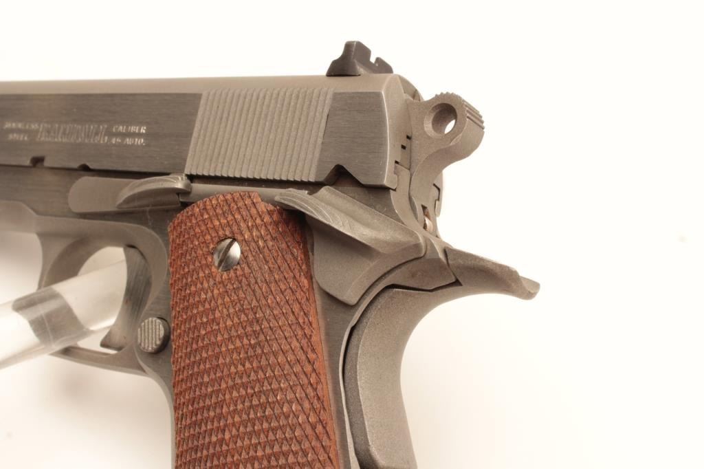 18BM-41 RANDALL CURTIS LEMAYEarly Randall Gen. Curtis E. LeMay .45 ACP stainless semi automatic pistol, #RF0002273C, 4 1/4" barrel, drift adjustable rear sights, checkered hardwood grips. Pistol is in fine to excellent condition overall, excellentbore, great action, very good grips with some minor flatening to the checkering. Includes two correct mags and the original box, which is in very good condition. (Modern / PPY) Est. $600-1200`Early Randall Gen. Curtis E. LeMay .45 ACP stainless semi automatic pistol, #RF0002273C, 4 1/4" barrel, drift adjustable rear sights, checkered hardwood grips. Pistol is in fine to excellent condition overall, excellentbore, great action, very good grips with some minor flatening to the checkering. Includes two correct mags and the original box, which is in very good condition. (Modern / PPY) Est. $600-1200`