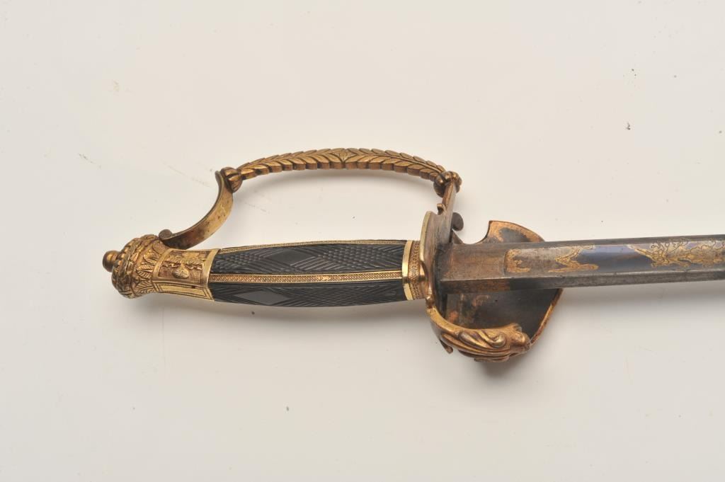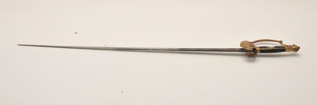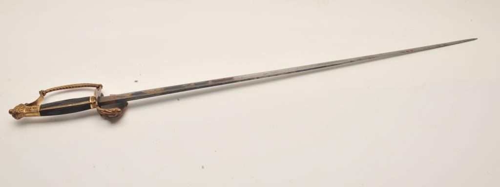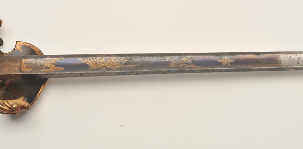 Lot 1006 18AR-79 COURT SWORDFancy Court sword (no scabbard) with blued and gilt decoration to top 8” of blad