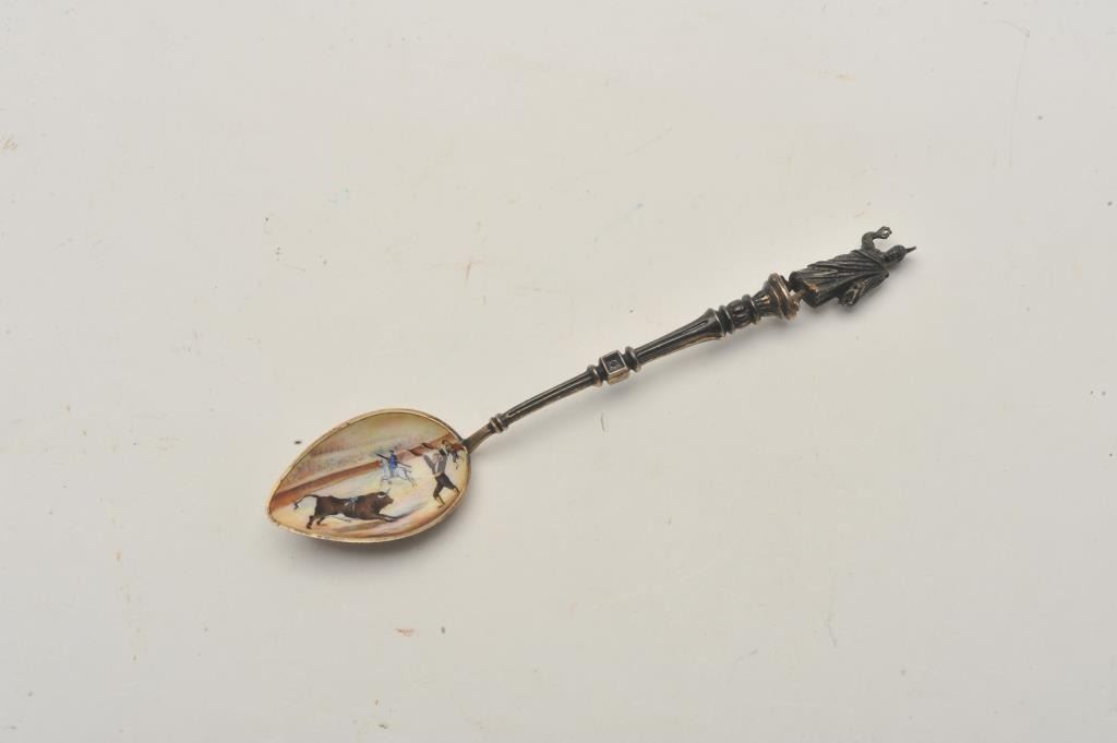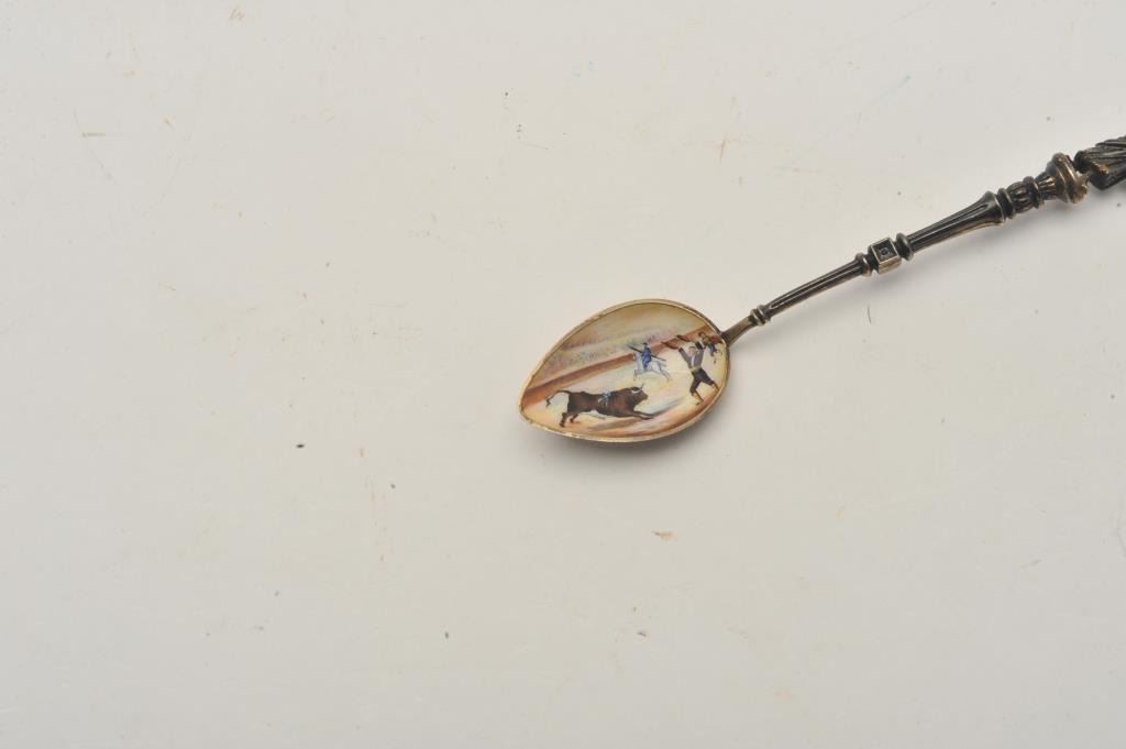 Lot 1067 EVE-419 900. FINE MRK ENAMALED BOWL SPOON900 fine marked enameled in bowl spoon of bullfight with R