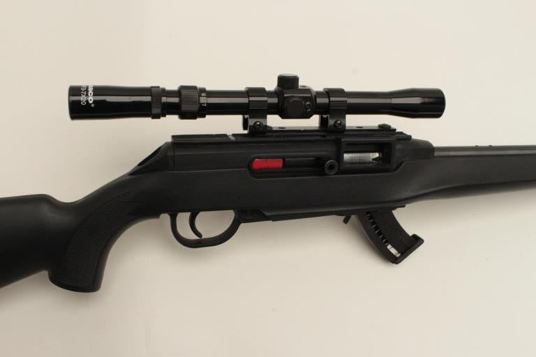 17FS-237 REM 522 VIPER .22LR 20" #3228163Remington Model 522 Viper semi-automatic rifle, .22LR caliber, 20” barrel, blued finish, checkered composite black stock, S/N 3228163, mounted with a Tasco scope displaying fine optics; rifle is in overallfine condition with a fine bore, action, markings and stock. (Modern/No PPT). Est.: $150-$300.Remington Model 522 Viper semi-automatic rifle, .22LR caliber, 20” barrel, blued finish, checkered composite black stock, S/N 3228163, mounted with a Tasco scope displaying fine optics; rifle is in overallfine condition with a fine bore, action, markings and stock. (Modern/No PPT). Est.: $150-$300.