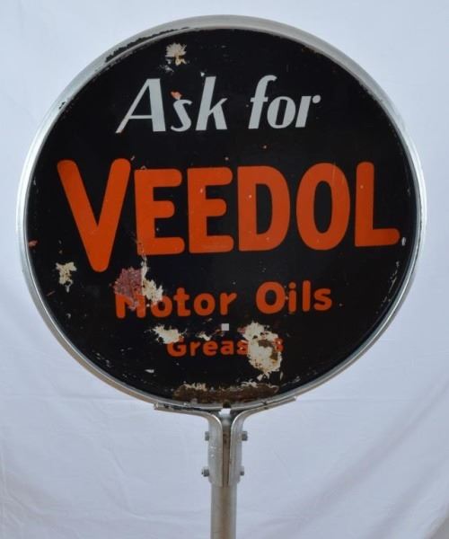 Lot 65 Veedol Motor Oils D/S Porcelain Lollipop Sign