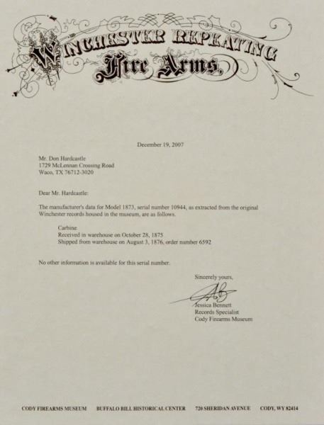 Lot 214 Winchester Model 1873 RC .44-40 Carbine