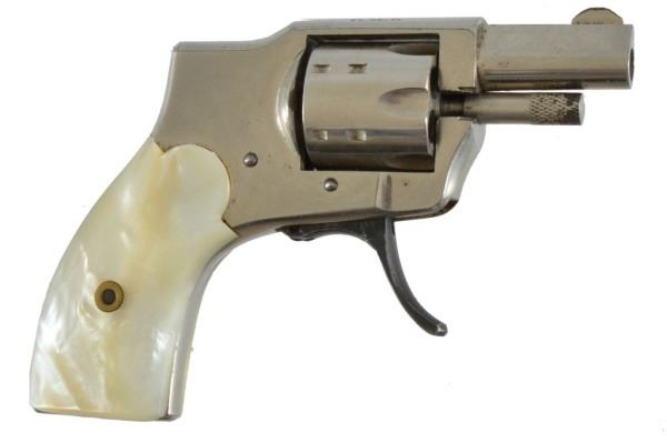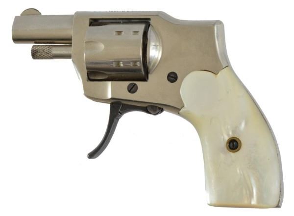 Ivory grips. Excellent condition. Rim fired, nickel plated with ivory handle.