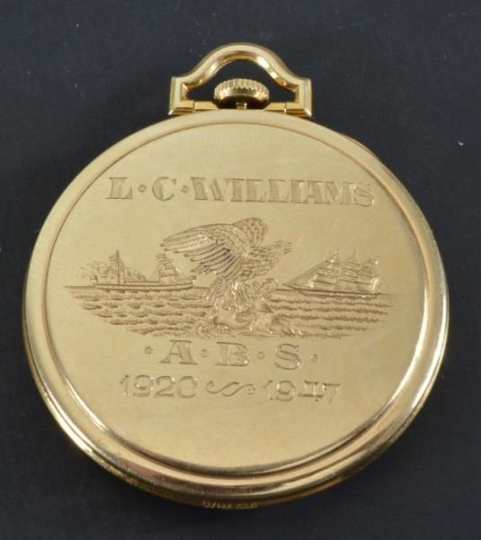 14kt yellow gold. SN# 54677 L.C. Williams. Runs.
