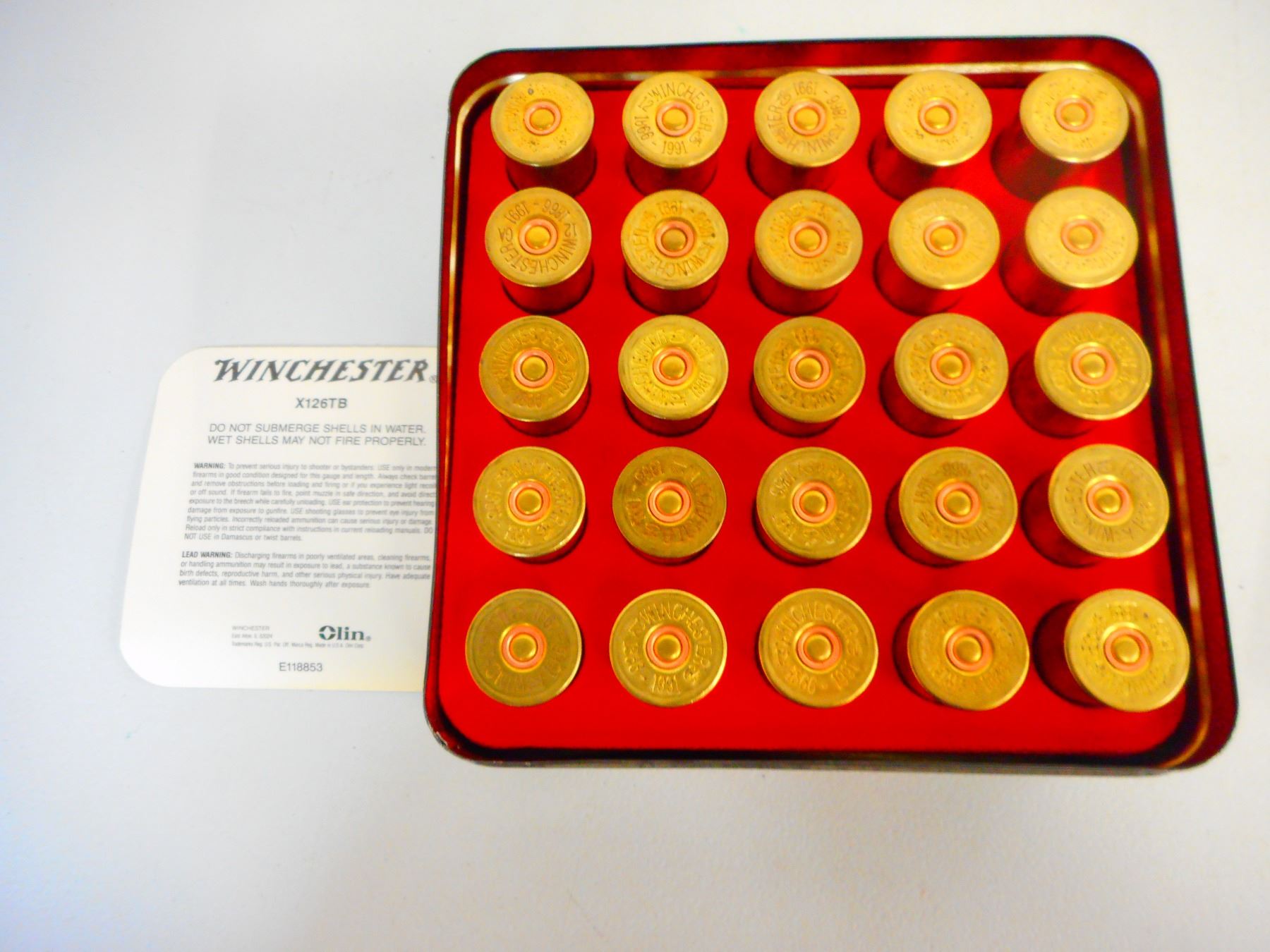 25 RNDS AMMO 2 3/4" SHOT 6, IN ORIGINAL TIN 1866-1991