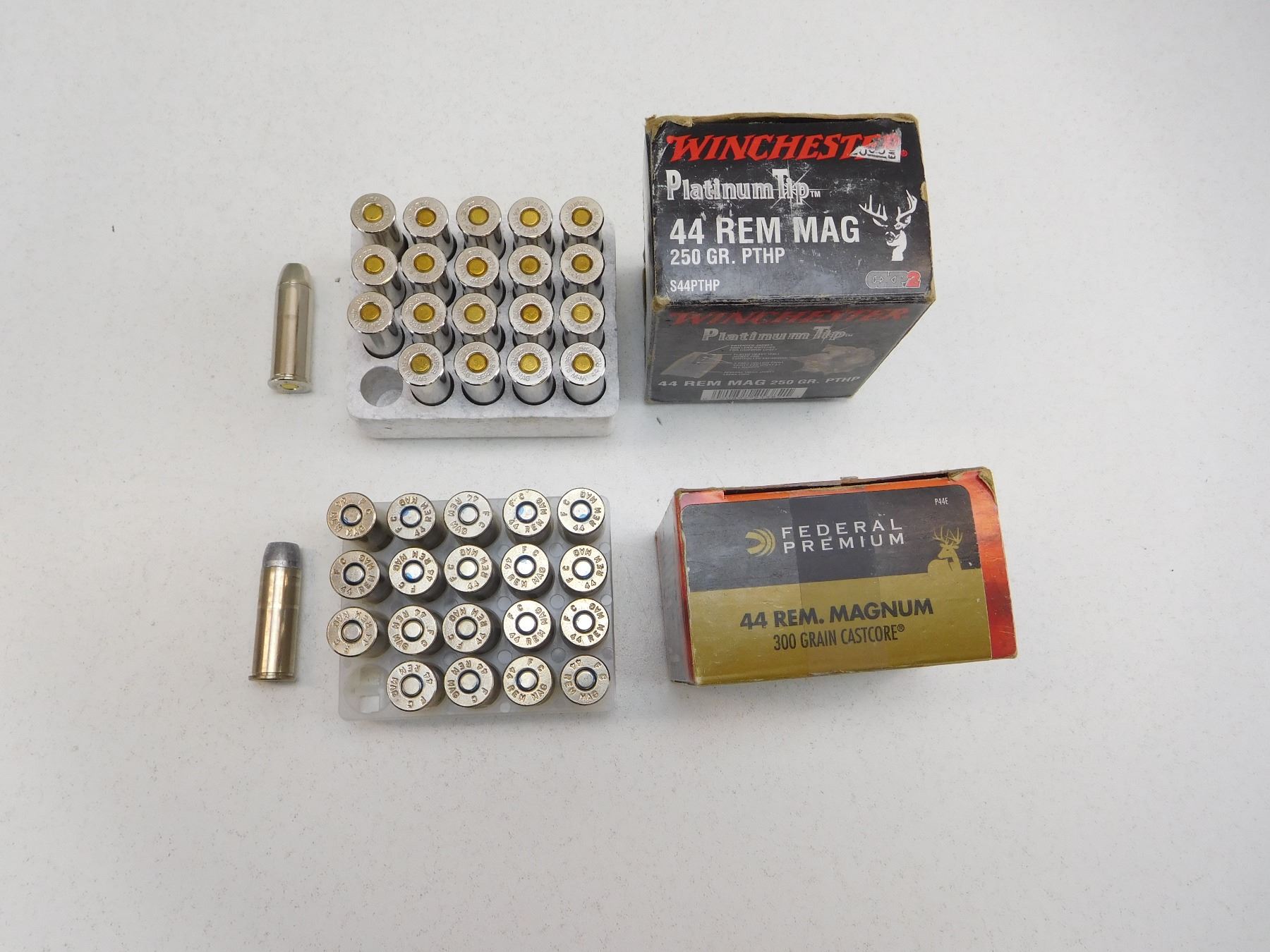 40 RNDS INCLUDES WINCHESTER PLATINUM TIP 250 GRAIN PTHP, FEDERAL 300 GRAIN CASTCORE