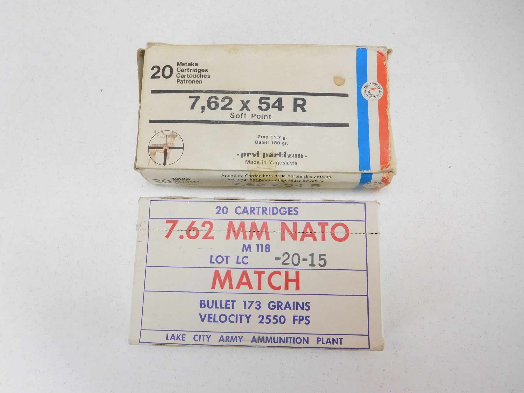 33 RNDS: 13 RNDS PRVI PARTIZAN 7.62 X 54R 180 GRAIN SP, 20 RNDS MATCH 7.62 MM NATO 173 GRAIN BOX IS PARTIALLY SEALED