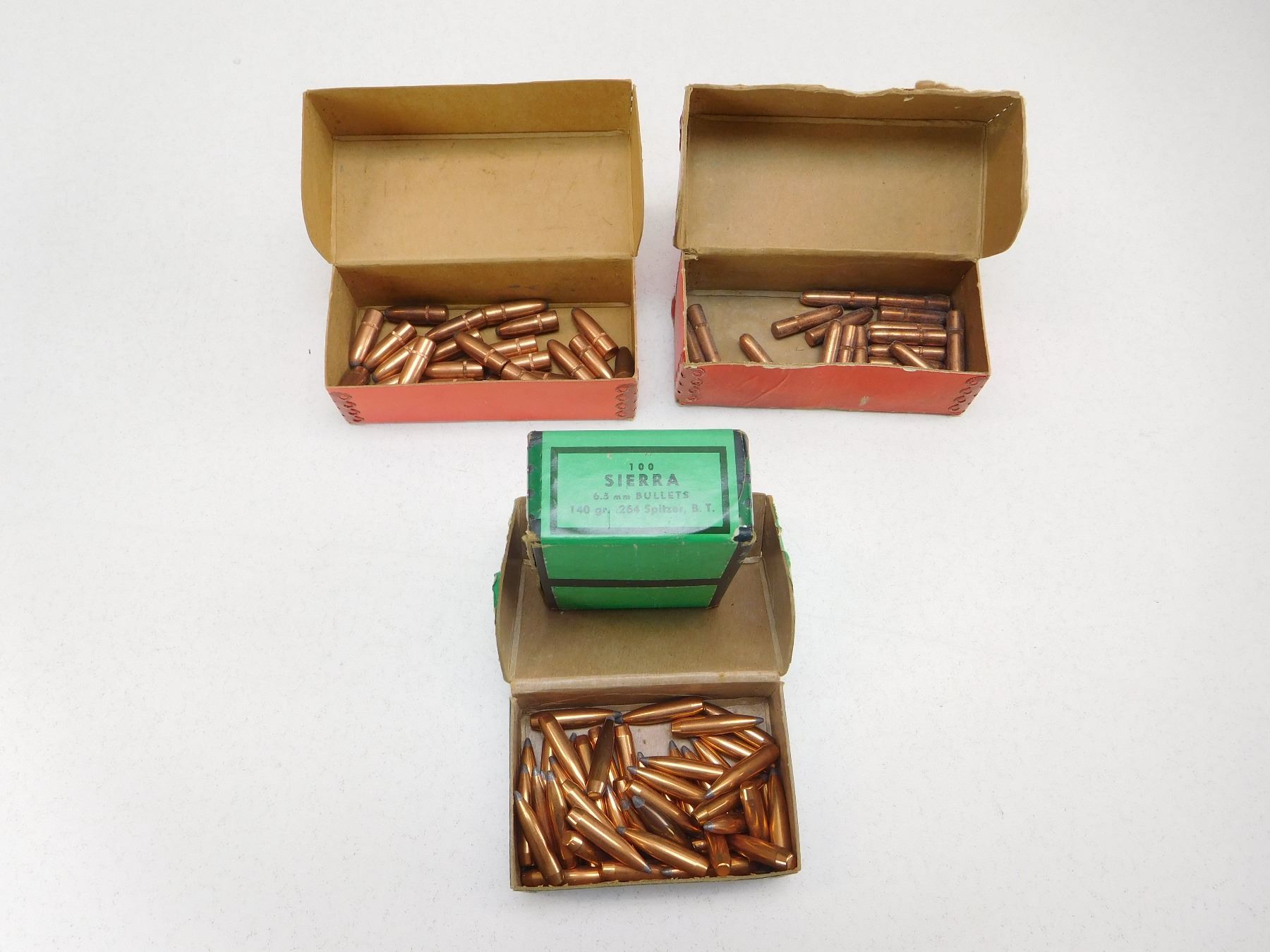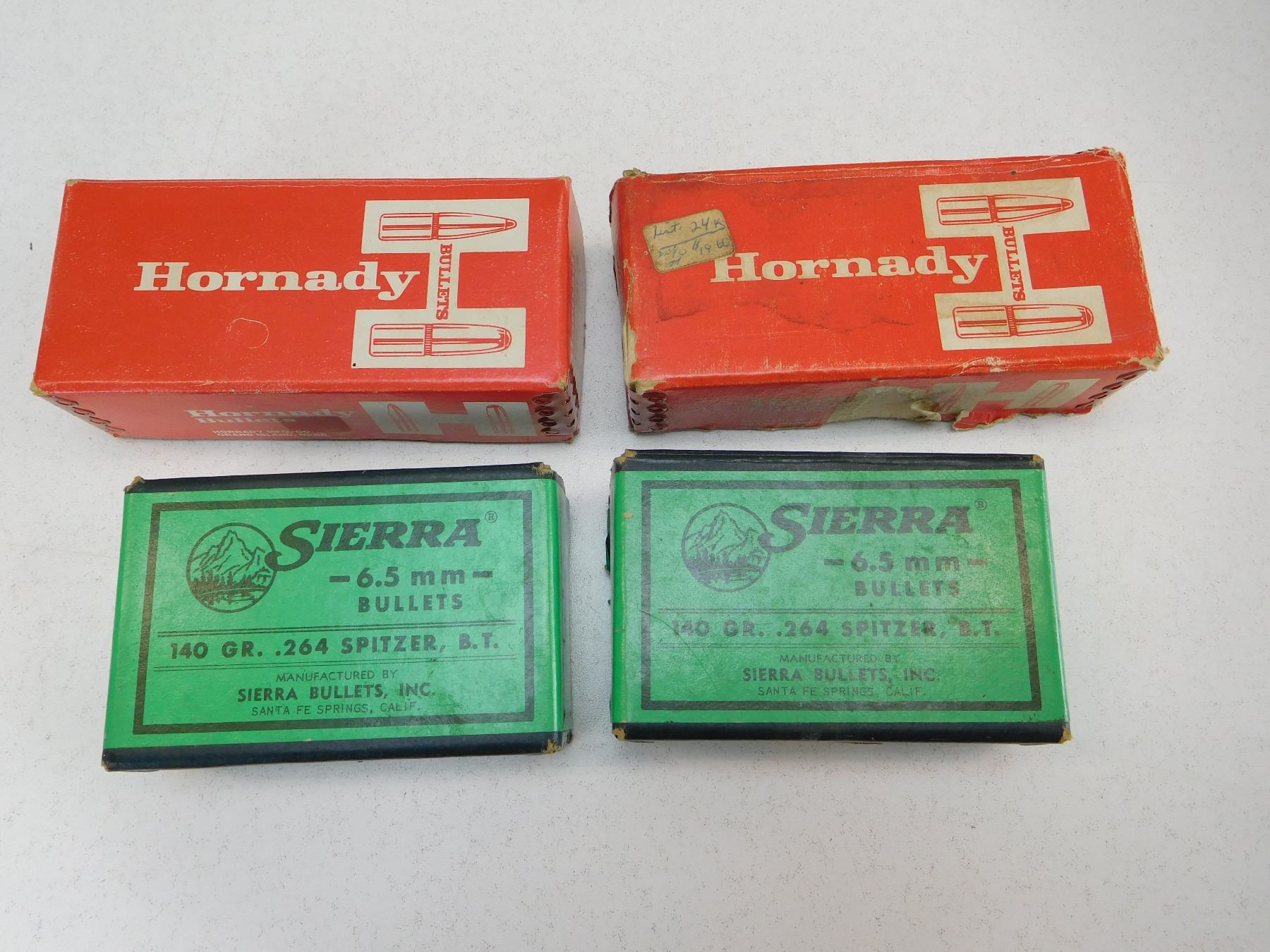 197 BULLETS TOTAL: 151 SIERRA 6.5MM BULLETS (1) BOX IS UNOPENED, 140 GRAIN, .264 SPITZER, B.T., 26 HORNADY .303 CAL. 174 GRAIN .312 ROUND NOSE, 20 RNDS 6.5MM CAL. 160 GRAIN. .264 ROUND NOSE