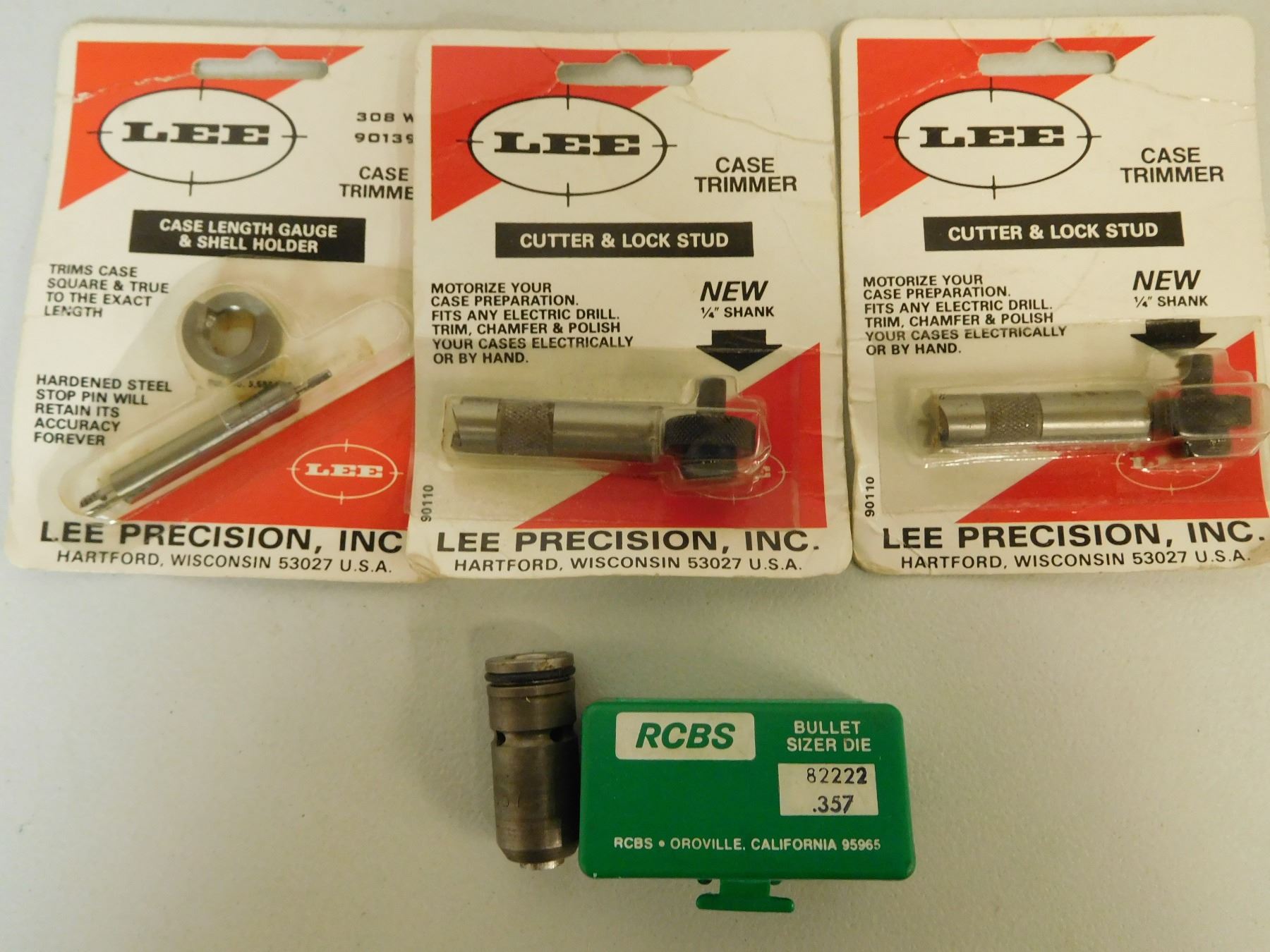 (2) CUTTER & LOCK STUD, (1) CASE LENGTH GAUGE & SHELL HOLDER FOR 308W, (1) RCBS BULLET SIZER DIE FOR .357, LOT OF 4