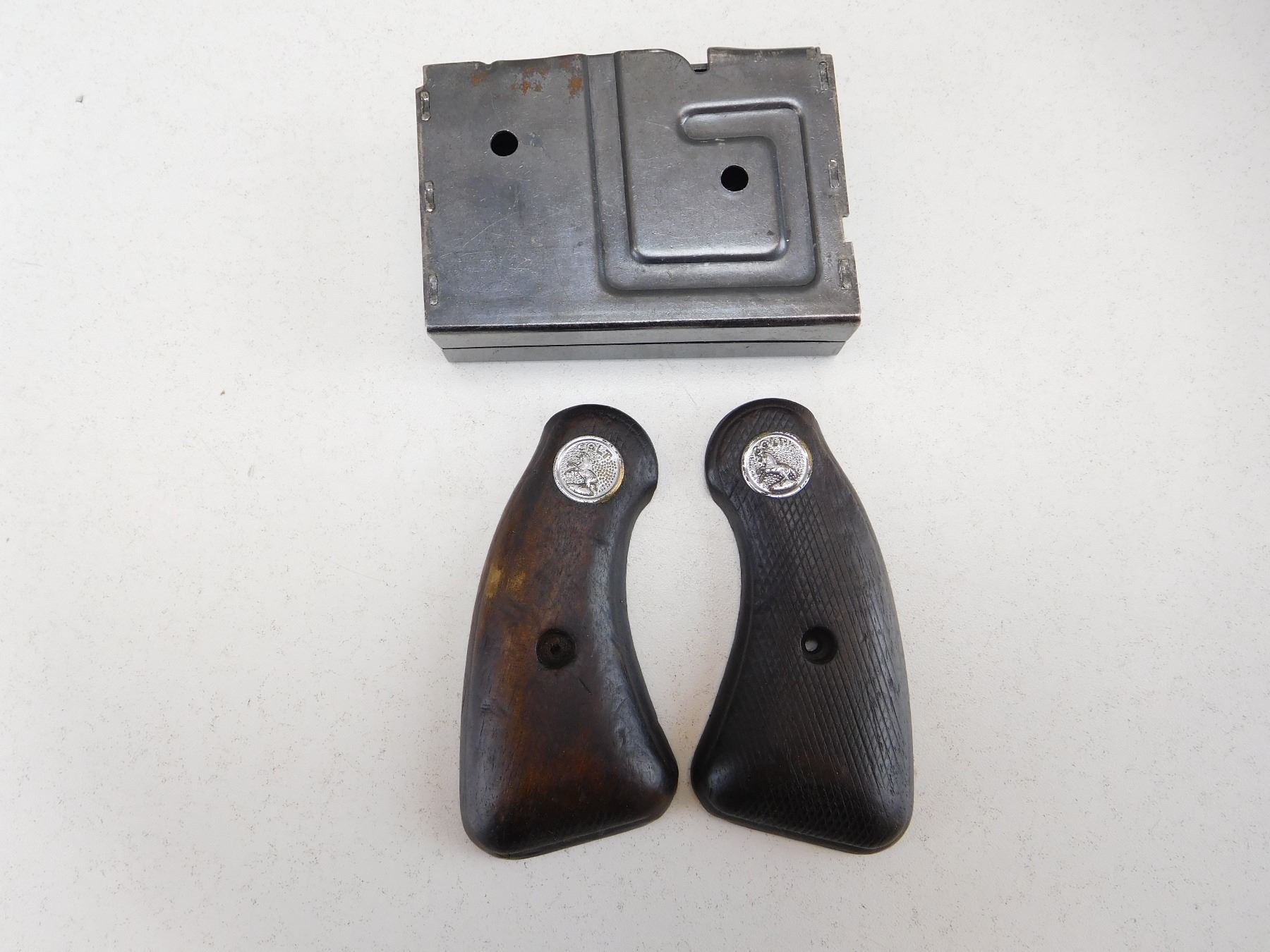 Lot 8426 COLT HANDGUN GRIPS & UNKNOWN MAGAZINE