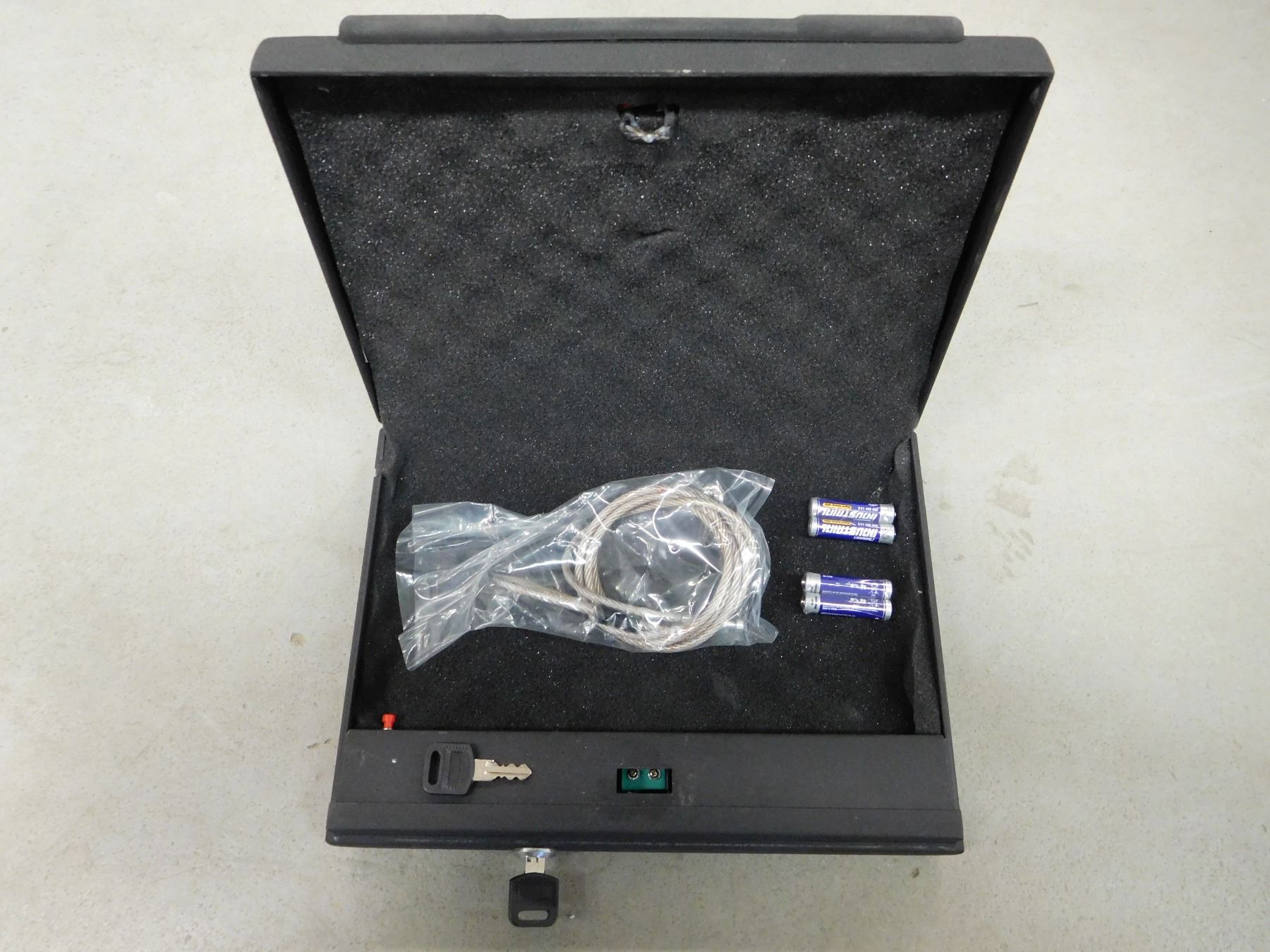 WITH ELECTRONIC LOCK & KEYS, INCLUDES SECURING CABLE, IN ORIGINAL BOX APPROX. 11 X 8.25 X 2.38"