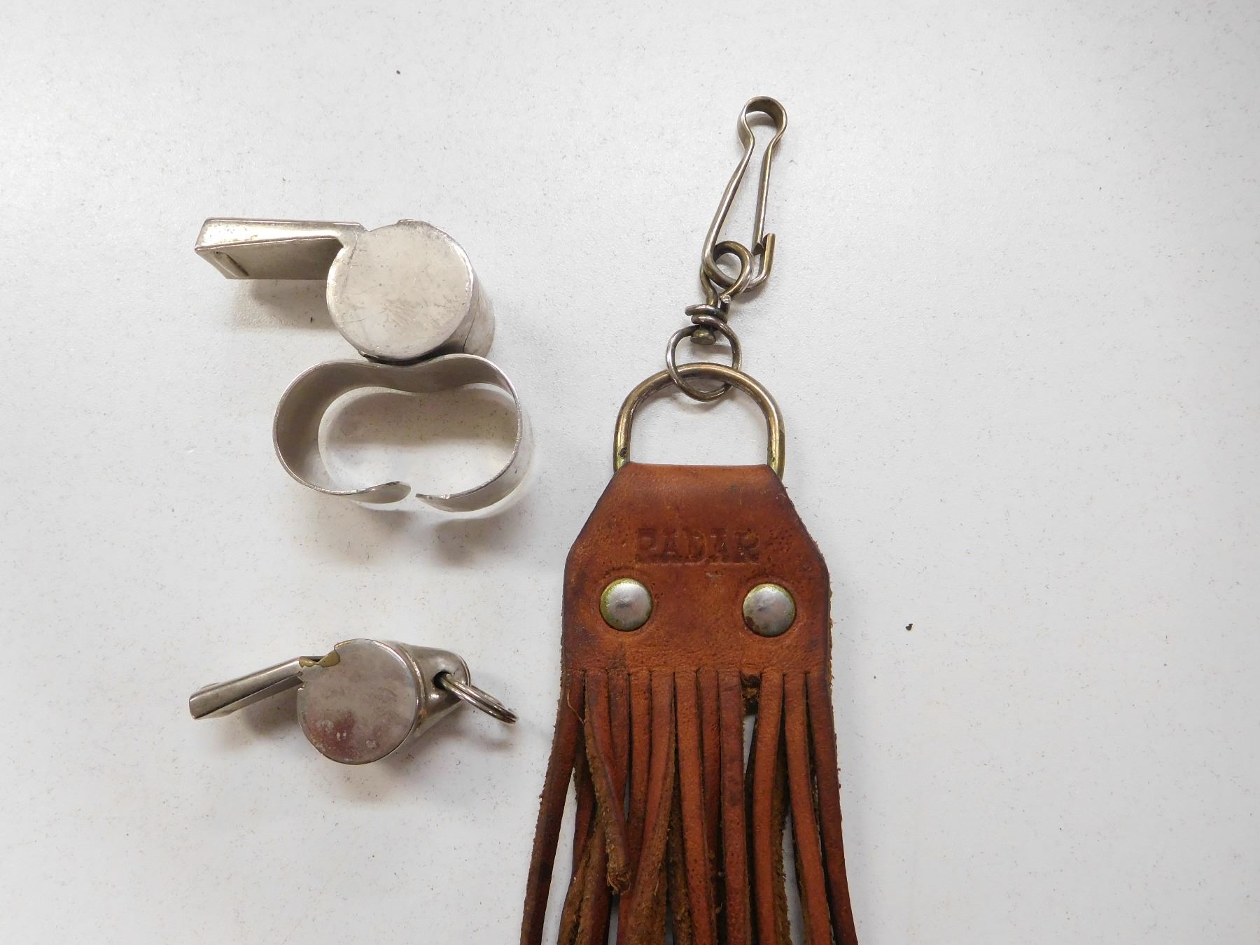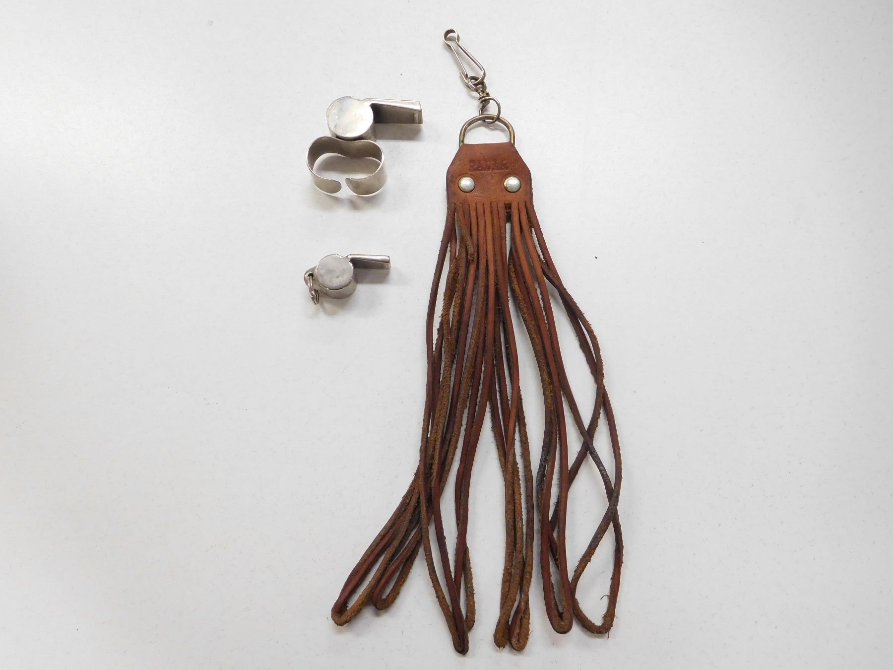 (1) SMALL LEATHER GAME NOOSE, (2) ACME WHISTLES
