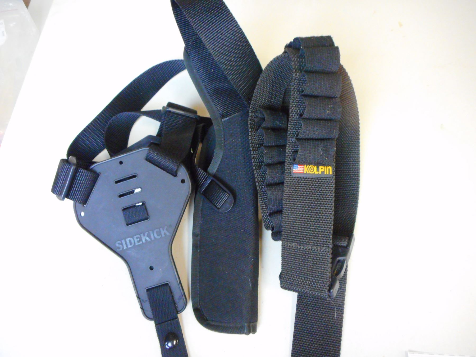 (1) SIDEKICK SIZE 5 WITH SHOULDER STRAP, (1) KOLPIN AMMO BELT