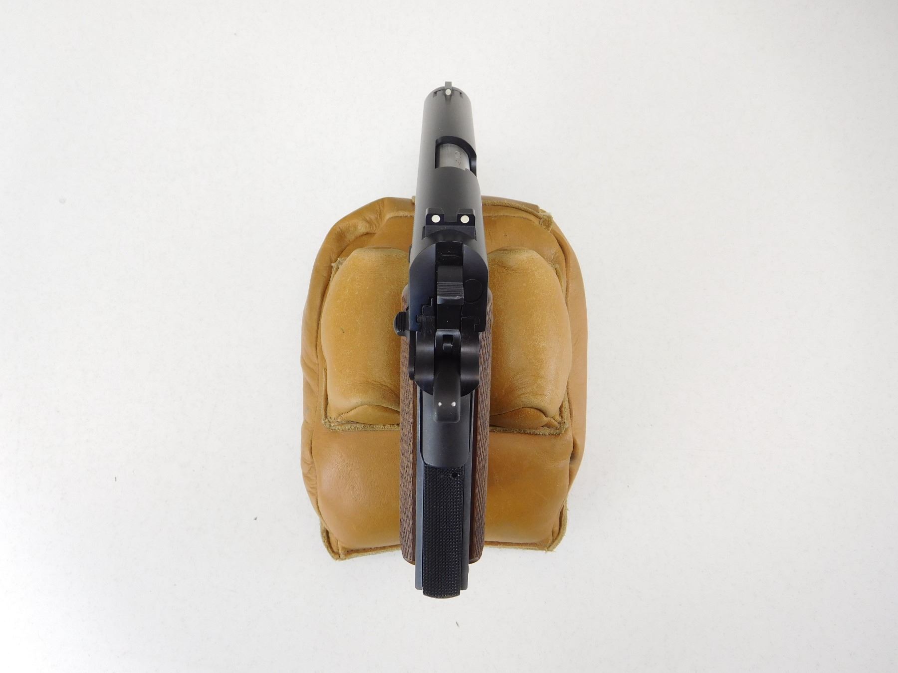 COMES WITH CASE AND MAGAZINE, DOVETAIL FRONT WITH WHITE INSERT AND RAISED WHITE DOT REAR SIGHTS, EXCELLENT BORE, CHECKERED WOODEN GRIPS , ACTION: SEMIAUTOMATIC HANDGUN , BARREL LENGTH: 110MM , STOCK # R2491 , SERIAL # RHN91532A , CONDITION: 9/10 , CLASS: CANADIAN RESTRICTED CLASS