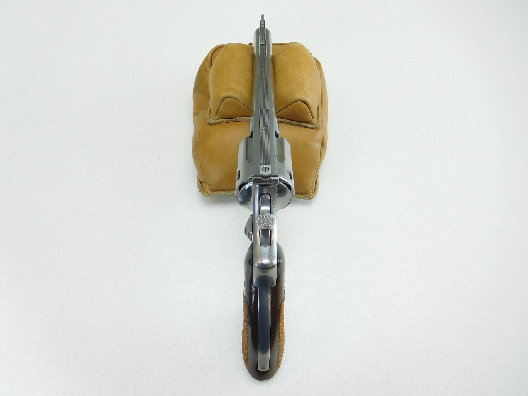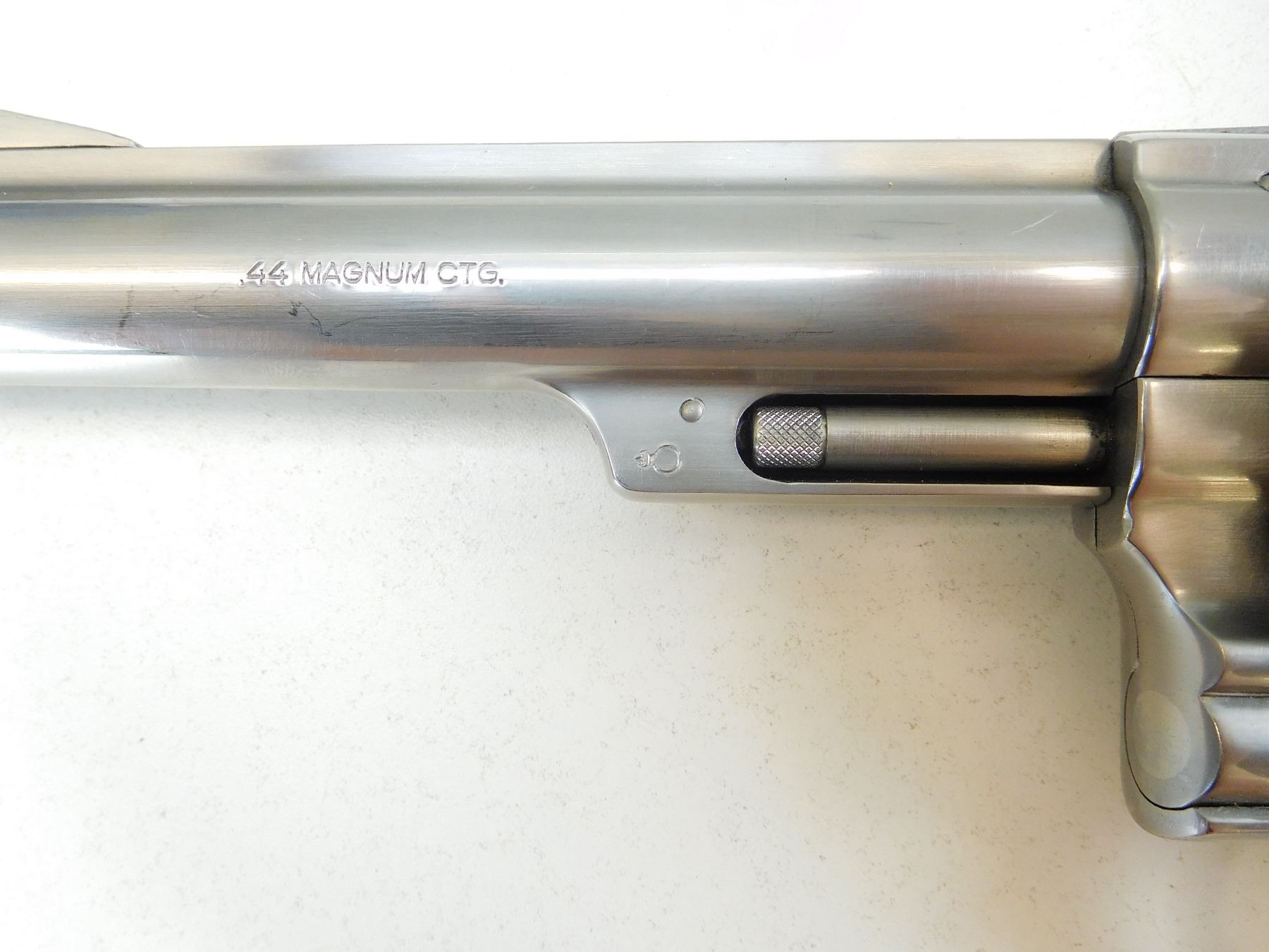 RAMP FRONT AND FULLY ADJUSTABLE REAR SIGHT, VERY GOOD BORE, CHECKERED HARD WOOD GRIPS, STAINLESS STEEL CONSTRUCTION, COCKS AND HOLDS , ACTION: REVOLVER , BARREL LENGTH: 152MM , STOCK # R2494 , SERIAL # R409406 , CONDITION: 8/10 , CLASS: CANADIAN RESTRICTED CLASS