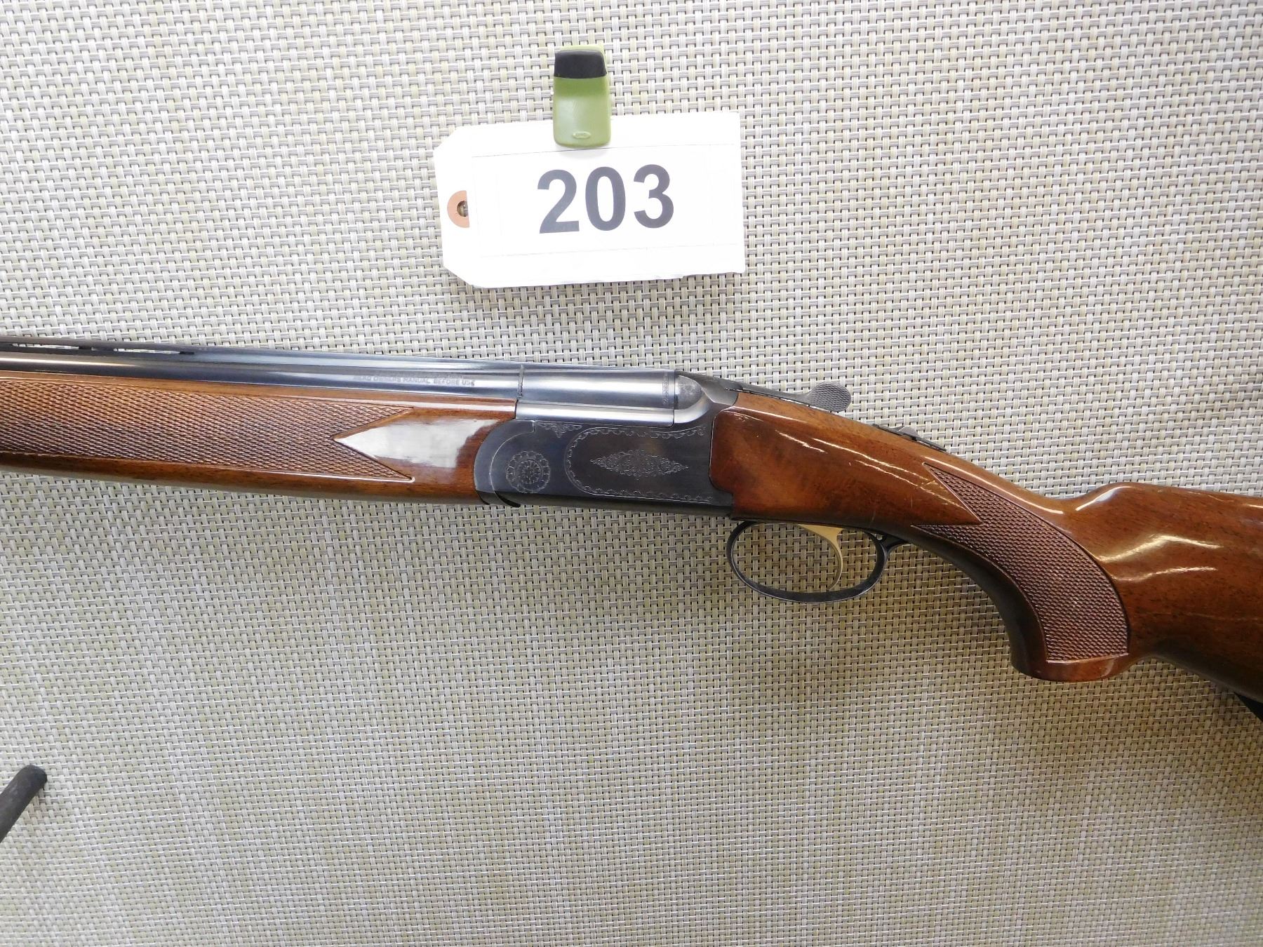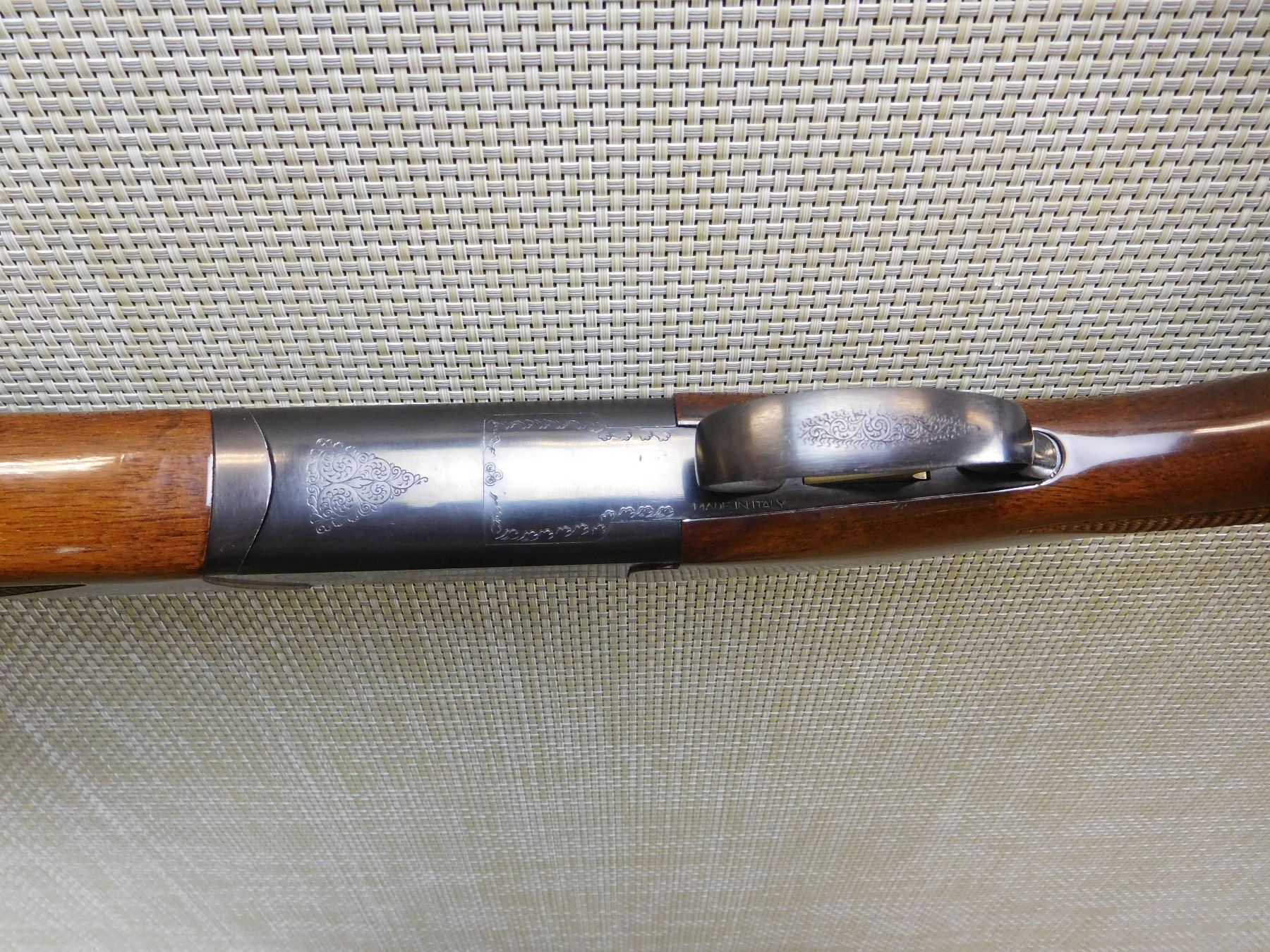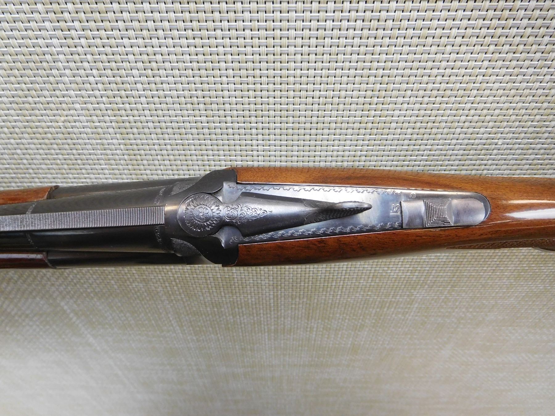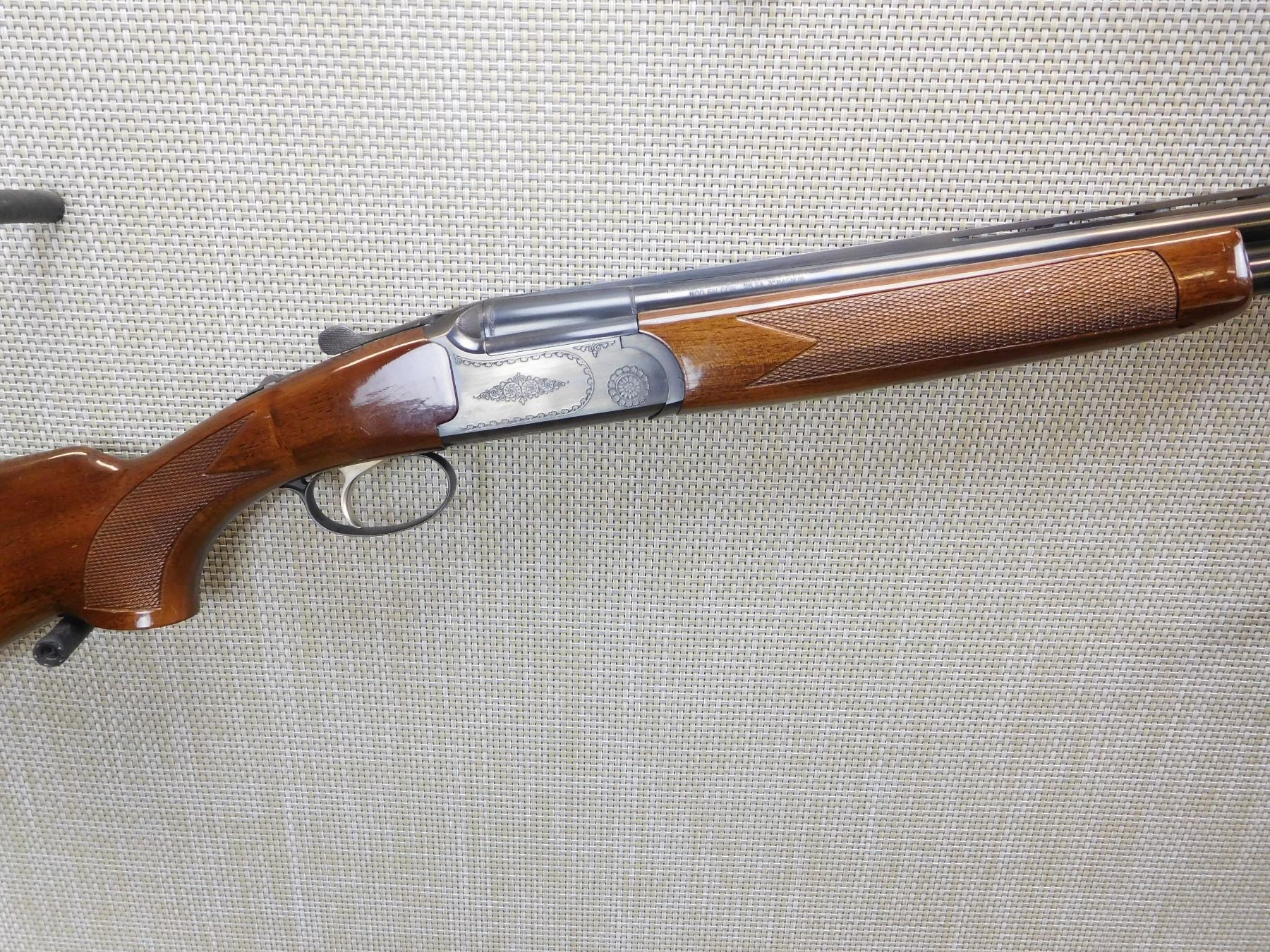 HAS FULL AND MODIFIED FIXED CHOKES, EXTRACTOR, VENTED RIB BARREL, BEAD FRONT SIGHT, CHECKERED SEMI PISTOL GRIP AND FORESTOCK, LIGHTLY ENGRAVED RECEIVER, HARD RUBBER BUTT PLATE, BORE IS GOOD , ACTION: OVER UNDER BREAK ACTION SHOTGUN , BARREL LENGTH: 28" , STOCK # 7095 , SERIAL # 23098 , CONDITION: 9/10 , CLASS: CANADIAN NON RESTRICTED CLASS